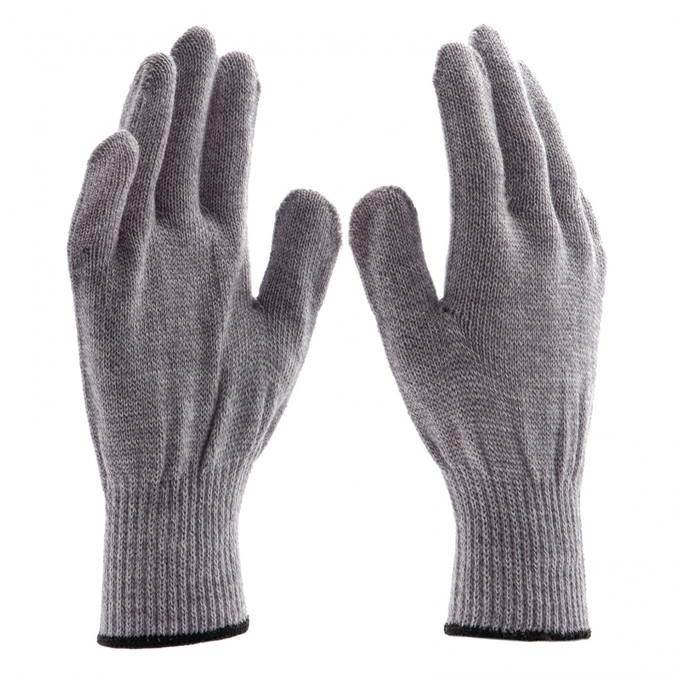 Трикотажные перчатки Сибртех 68654 цвета серое мулине, из акрила, обработанные оверлоком, используют во время строительных и монтажных работ. Они надежно защищают руки от холода, а также от травм и загрязнений. Благодаря своей эластичности перчатки легко надеваются и не стесняют движения пальцев по время работы.