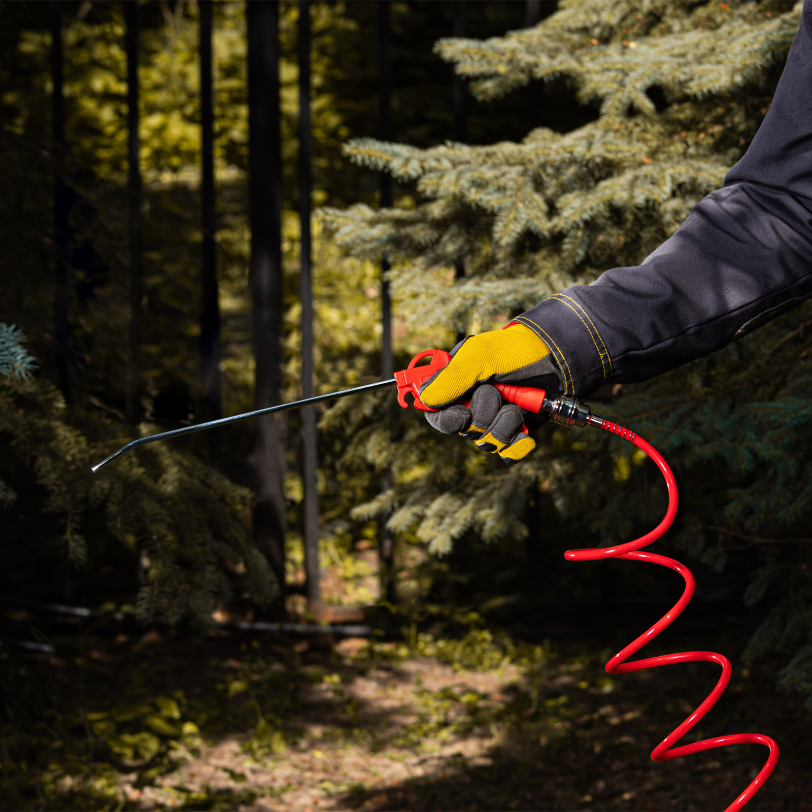 - Высокая эффективность — изогнутое сопло облегчает работу в труднодоступных местах, позволяя прочистить очень узкие отверстия.