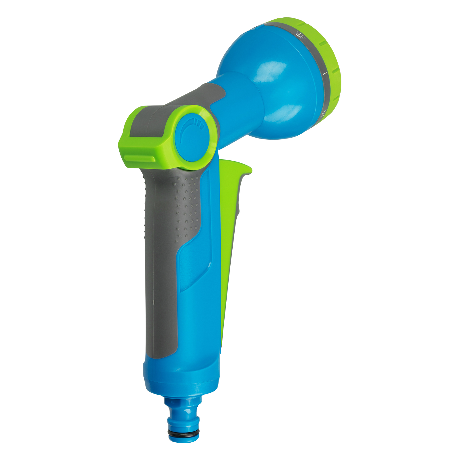- 8 типов распыления — конусное, вертикальное и горизонтальное, душ, жесткая струя, веер, туман, полный полив.