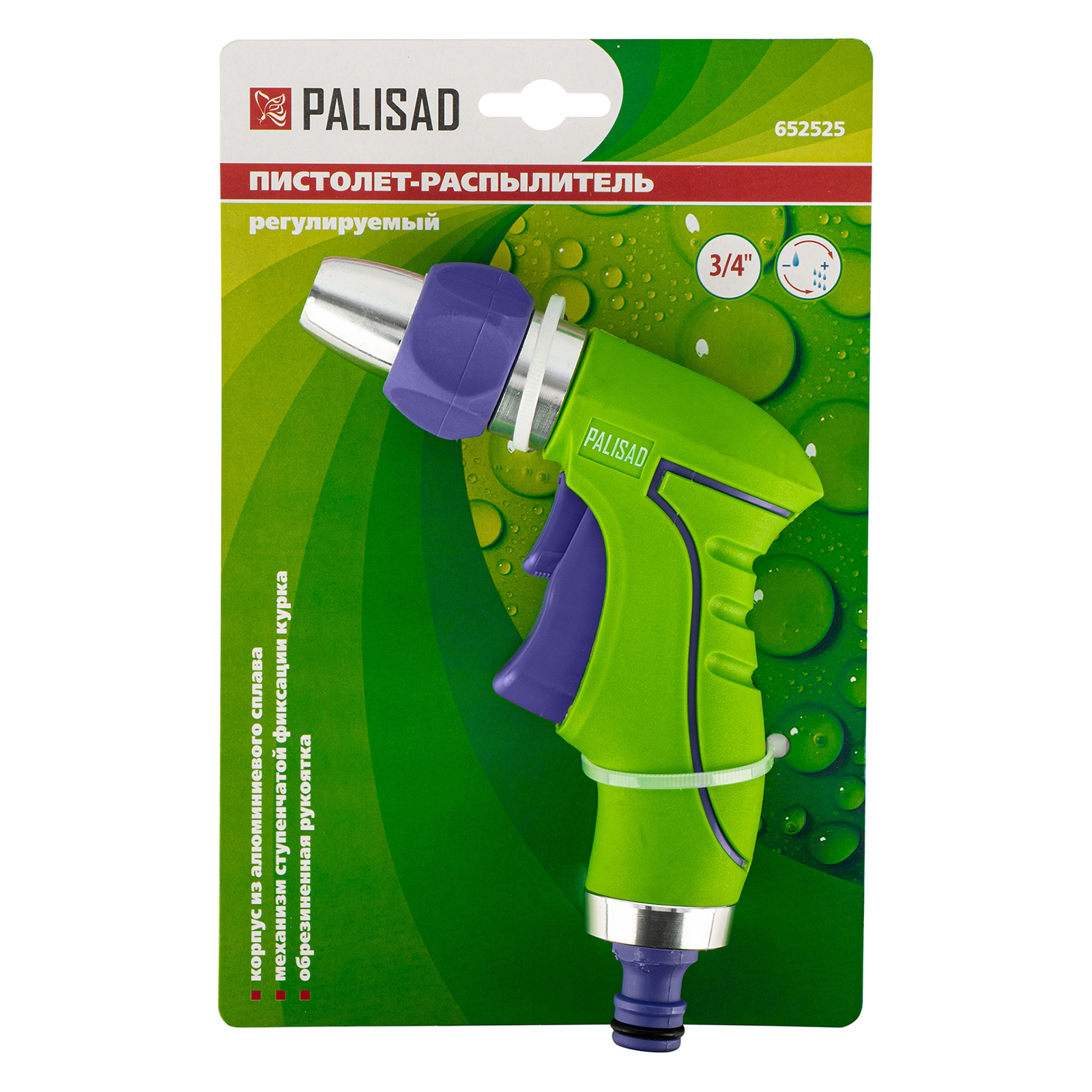 Регулируемый пистолет-распылитель Palisad 652525 в металлическом корпусе обеспечивает комфортный полив участка. С его помощью можно орошать газон, клумбы, грядки, а также очищать инструменты, тротуары, садовые дорожки, инвентарь и т.д. Благодаря пистолету-распылителю легко ухаживать за огородом, садом, небольшими зонами отдыха в городе, что делает его незаменимым для коммунальщиков и дачников.