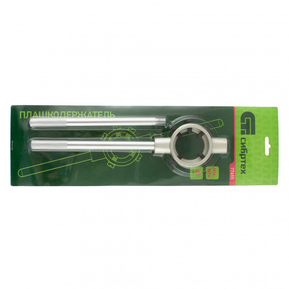 Плашкодержатель Сибртех 77455, позволяет захватывать плашки различных размеров: М16-24. Благодаря ему можно осуществить ручное нарезание резьбы в домашних условиях в ходе слесарных и монтажных работ. Плашкодержатель облегчает работу и позволяет получить ровную резьбу на детали.