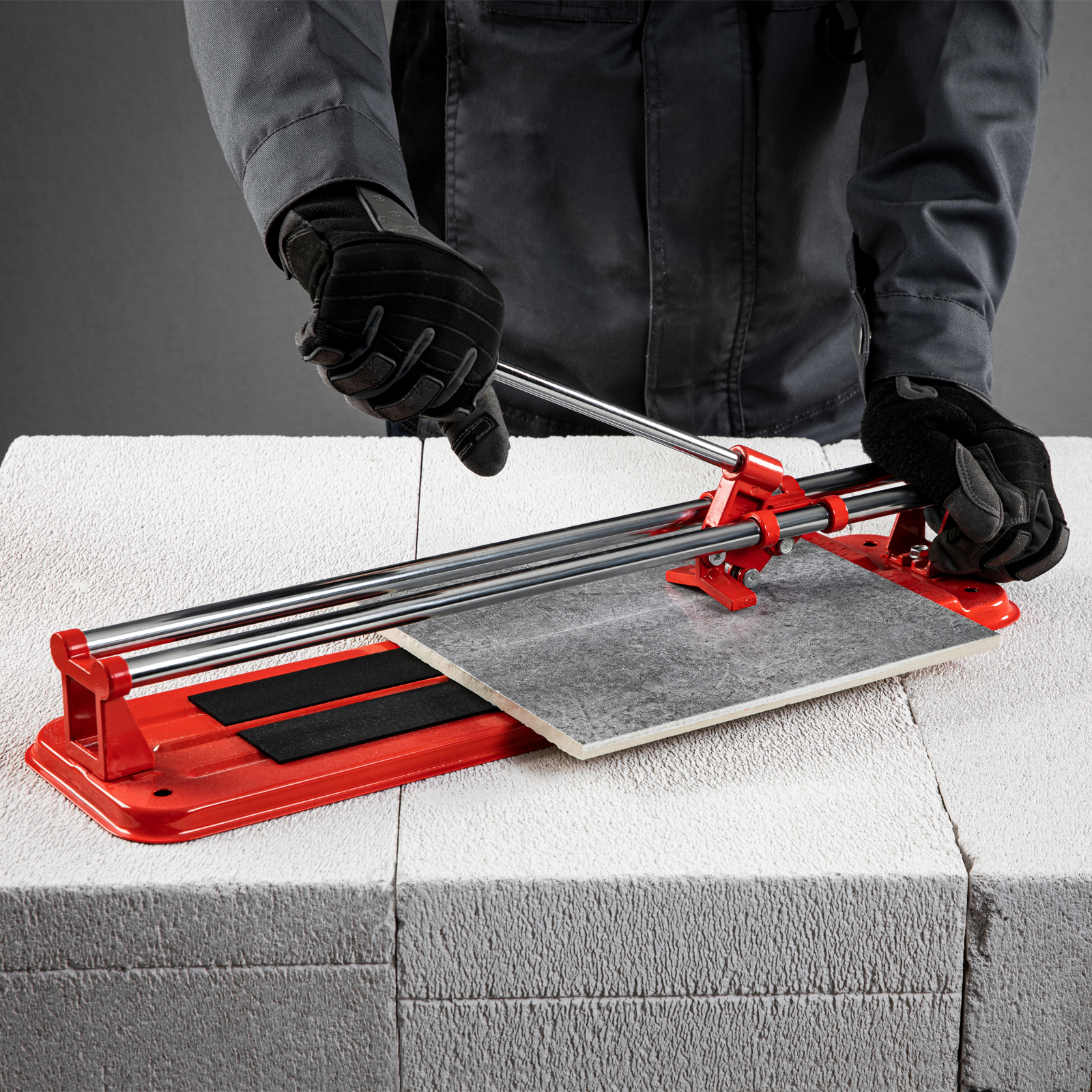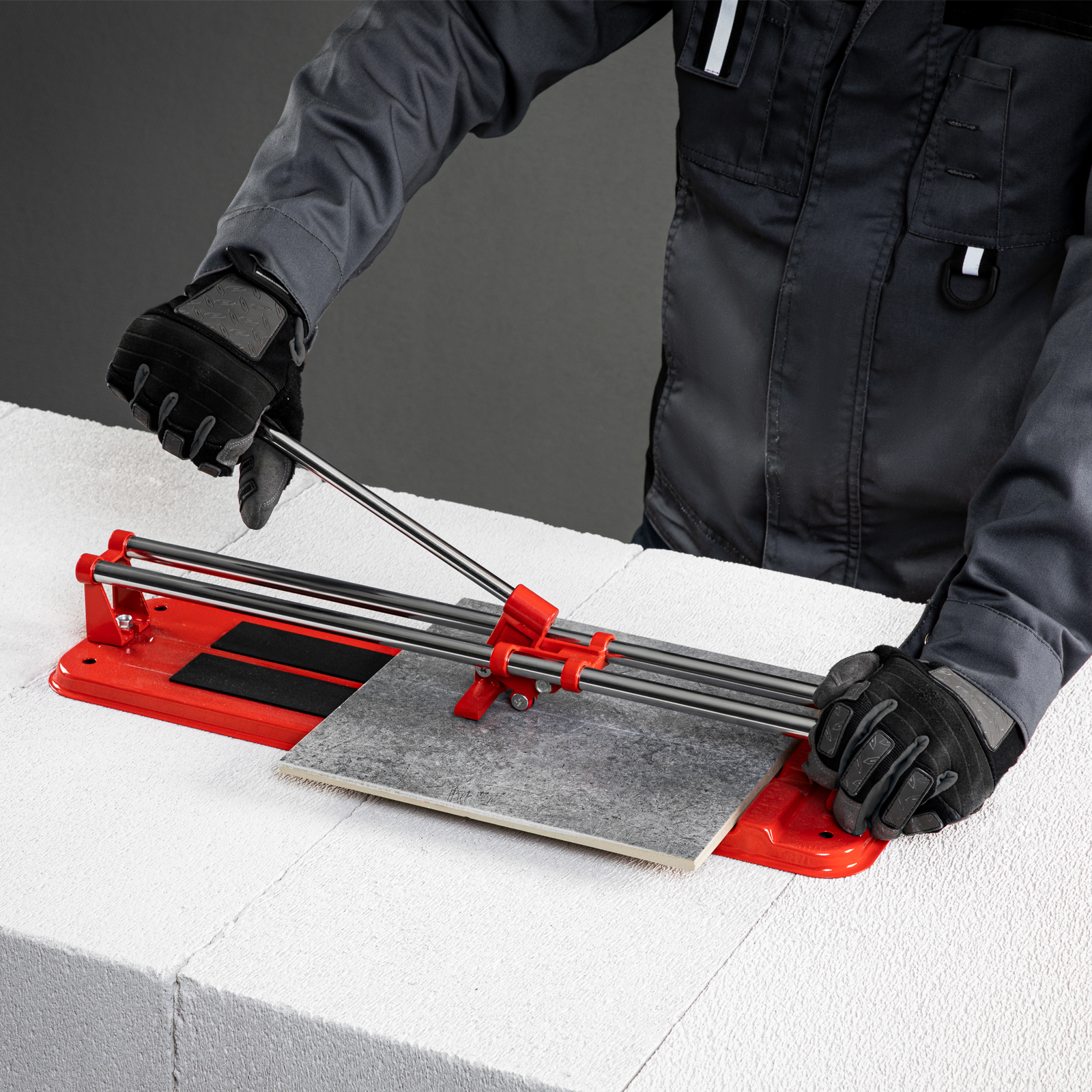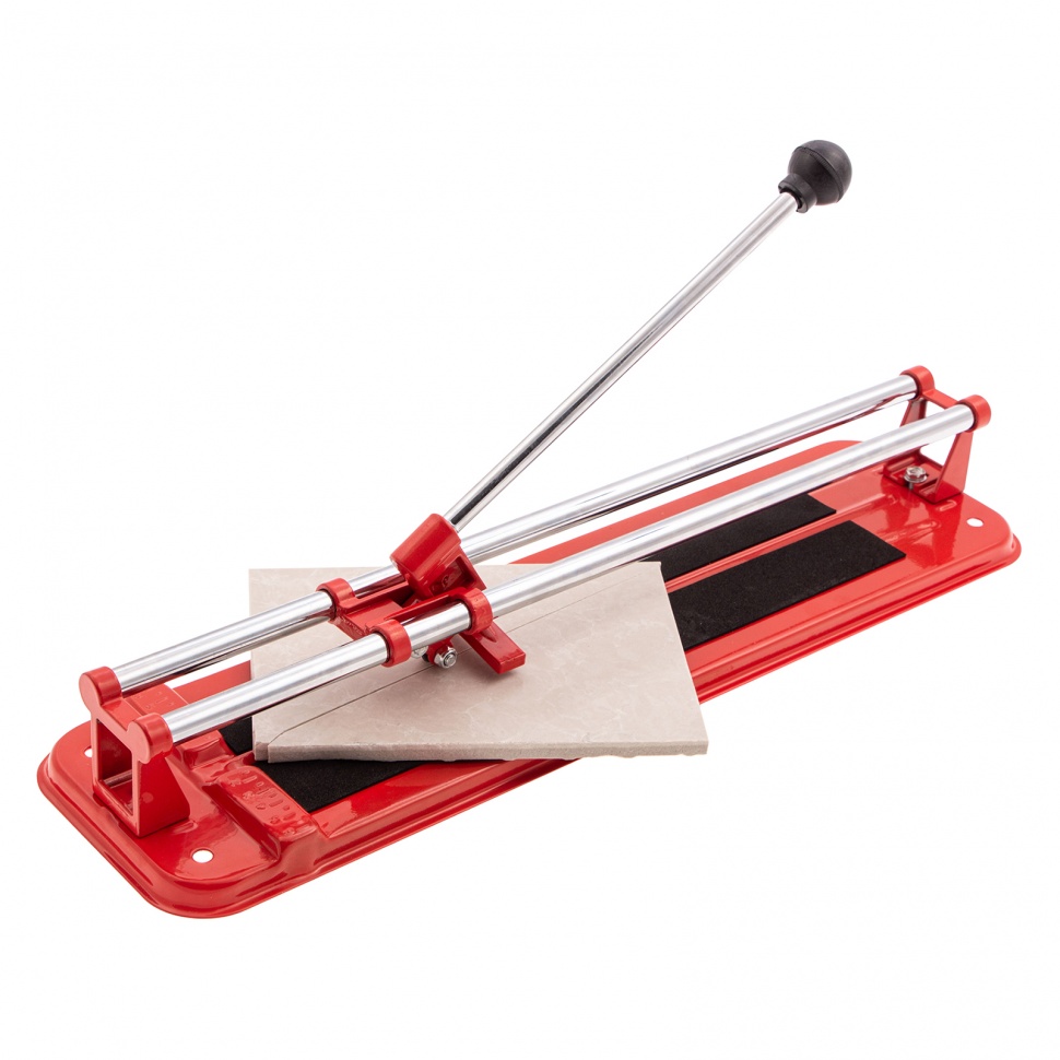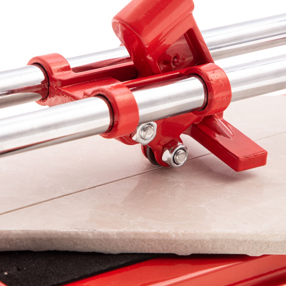 - Высокое качество работы — стальное основание обеспечивает устойчивость плиткореза, мягкие амортизирующие накладки предотвращают сдвиг плитки.