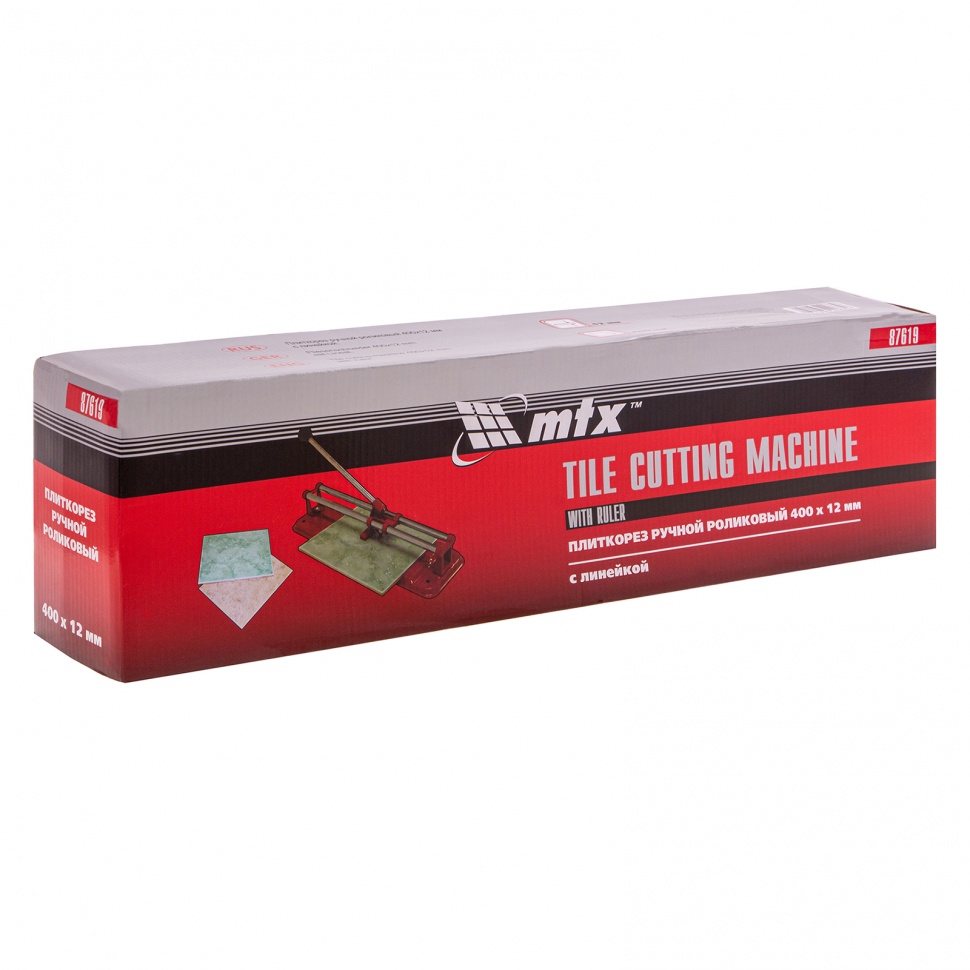 Плиткорез MTX 87619 — инструмент для работы с керамической плиткой размером до 400 х 12 мм. Упрощает и ускоряет резку, позволяет получать ровный и аккуратный срез.