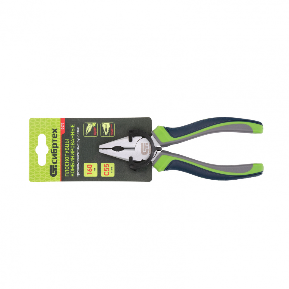 Комбинированные плоскогубцы Сибртех 17077 длиной 160 мм, с трехкомпонентными рукоятками, — незаменимый инструмент в быту. С их помощью можно захватывать детали, перекусывать прутки и проволоку, сгибать листовые материалы. Они облегчают слесарные работы при ремонте авто, сборке и наладке оборудования и т.д.