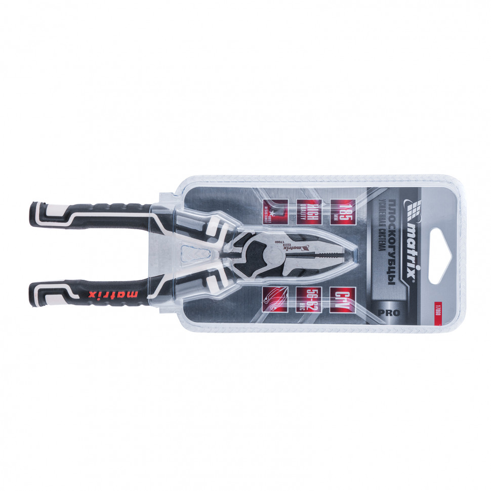 Комбинированные плоскогубцы Matrix PRO 17060 длиной 185 мм, с усиленной системой, используются для фиксации и удерживания плоских деталей, а также разрезания проволоки или проводов. Шарнир смещен к режущим кромкам, что позволяет передавать большее усилие и увеличивает эффективность реза. Плоскогубцы предназначены для профессионального применения в сфере строительства и ремонта.