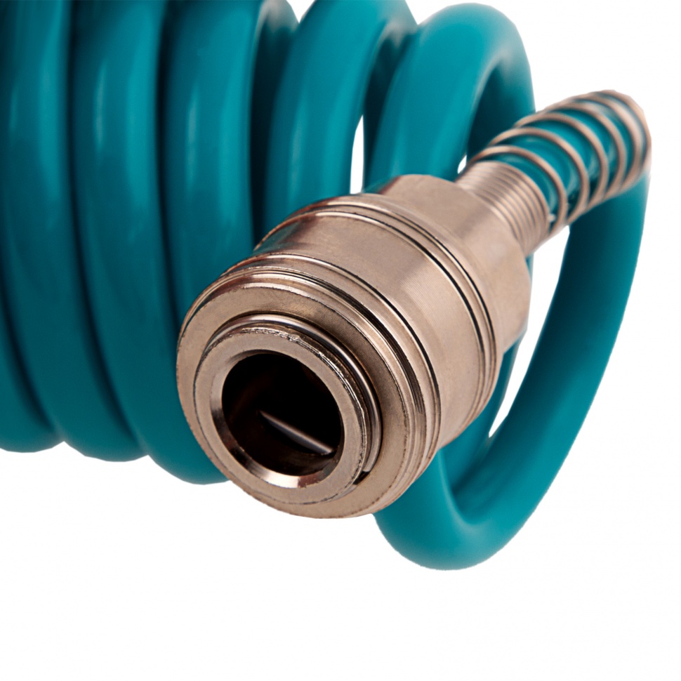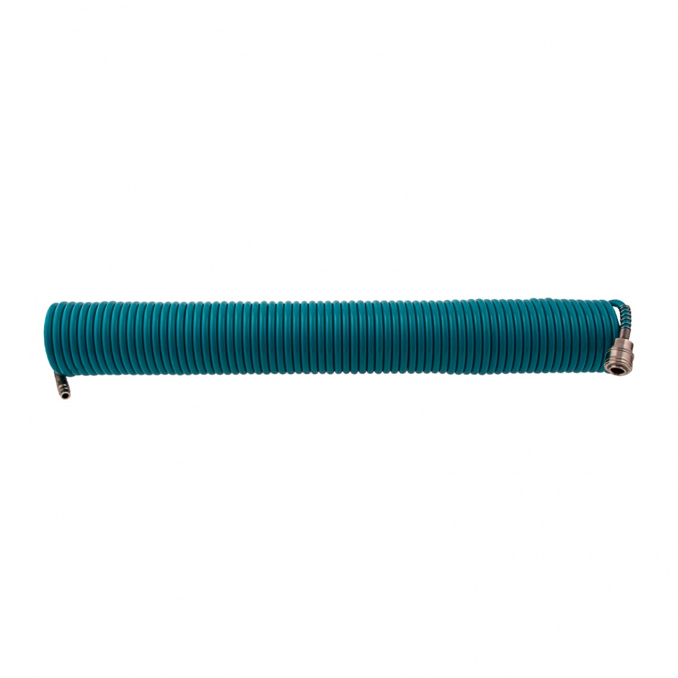 Профессиональный полиуретановый спиральный шланг Stels 57009 из сырья BASF, длиной 15 м, с быстросъемными соединениями, предназначен для подключения пневматического оборудования. Благодаря увеличенной толщине рукав выдерживает давление до 24 бар, поэтому подходит для мощного компрессорного оборудования. Используется в строительстве и на производственных предприятиях.
