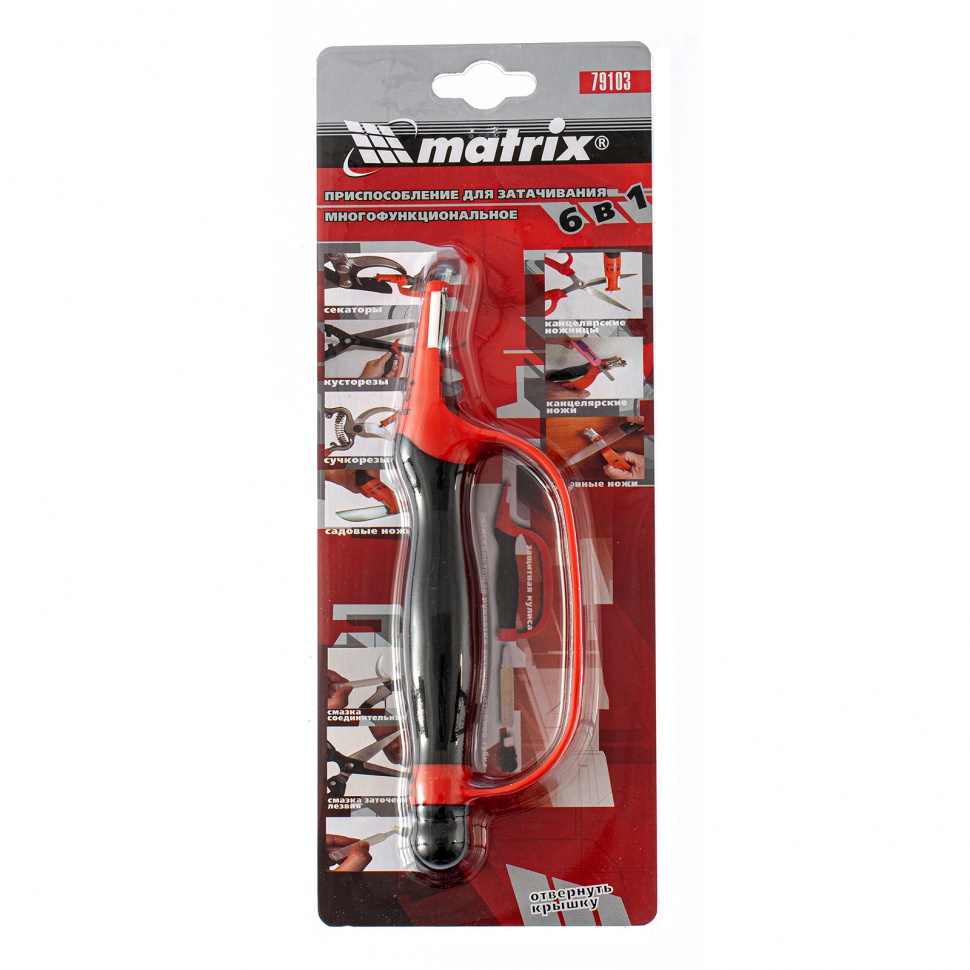 Многофункциональное приспособление для затачивания 6 в 1 Matrix 79103 восстанавливает остроту лезвий бытовых режущих инструментов — ножниц, кухонных, канцелярских и садовых ножей, кусторезов, секаторов и сучкорезов. Две пары точильных камней позволяют проводить заточку под нужным углом. Чтобы смазать лезвие, не нужно искать масленку и губку — они входят в комплект поставки. Ножеточка будет полезна в домашнем хозяйстве.
