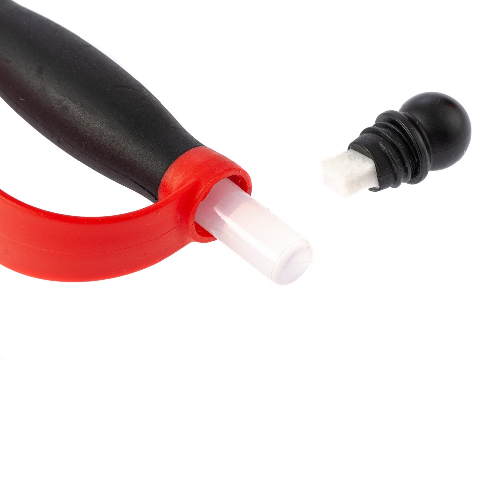 - Продуманная конструкция — масленка хранится внутри корпуса, а губка встроена в колпачок, поэтому они всегда под рукой.