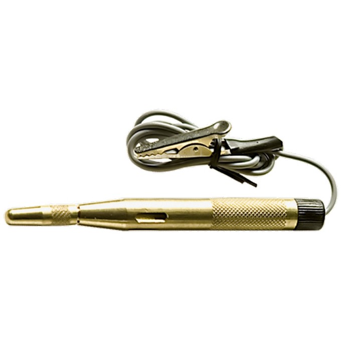 Автомобильный пробник Sparta 555105 длиной 110 мм, с металлическим корпусом, определяет напряжение постоянного тока в диапазоне 6-24 В. Пригодится на станциях техобслуживания и автовладельцам при ремонте транспортных средств, монтаже электрооборудования и проверке свечей зажигания.