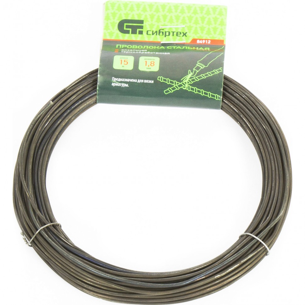 Стальная проволока Сибртех 84912 длиной 15 м и диаметром 1,8 мм, термообработанная, используется в качестве строительного материала при возведении железобетонных конструкций. Пригодится для вязки арматуры и решения хозяйственных нужд.