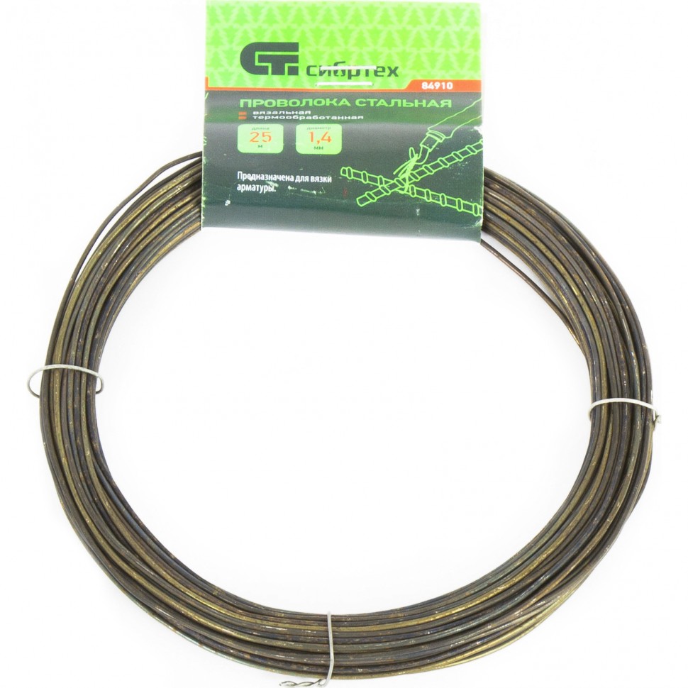 Стальная проволока Сибртех 84910 длиной 25 м и диаметром 1,4 мм, термообработанная, используется в качестве строительного материала при возведении железобетонных конструкций. Пригодится для вязки арматуры и решения хозяйственных нужд.