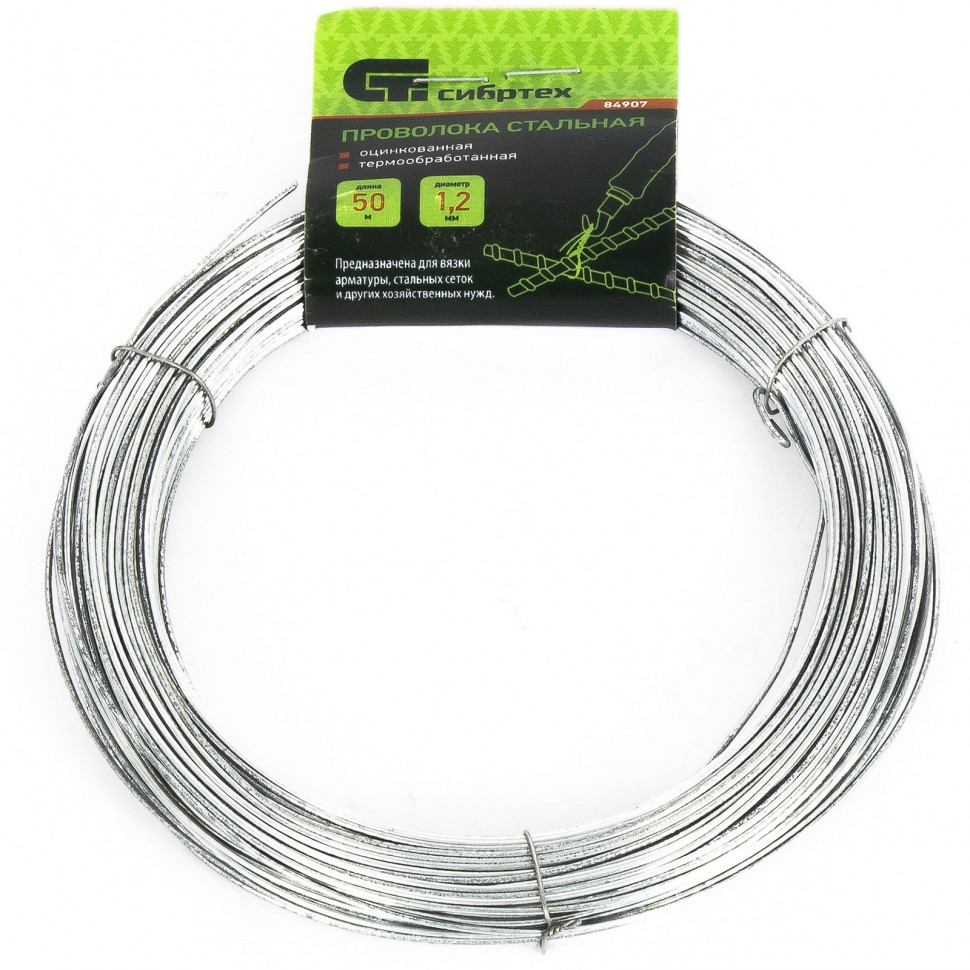 Стальная проволока Сибртех 84907 диаметром 1,2 мм и длиной 50 м, оцинкованная и термообработанная, пригодится в хозяйстве для несложных строительных работ. Применяется для армирования конструкций, обвязки сеток и фиксации различных предметов.