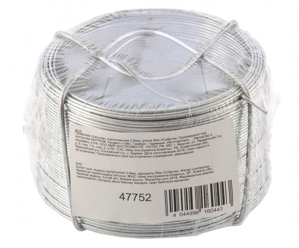 Стальная оцинкованная проволока Сибртех 47752 диаметром 0,9 мм и длиной 50 м используется для фиксации и связывания грузов, создания растяжек. Пригодится во время такелажных работ, будет полезна для занятий рукоделием и решения бытовых задач.
