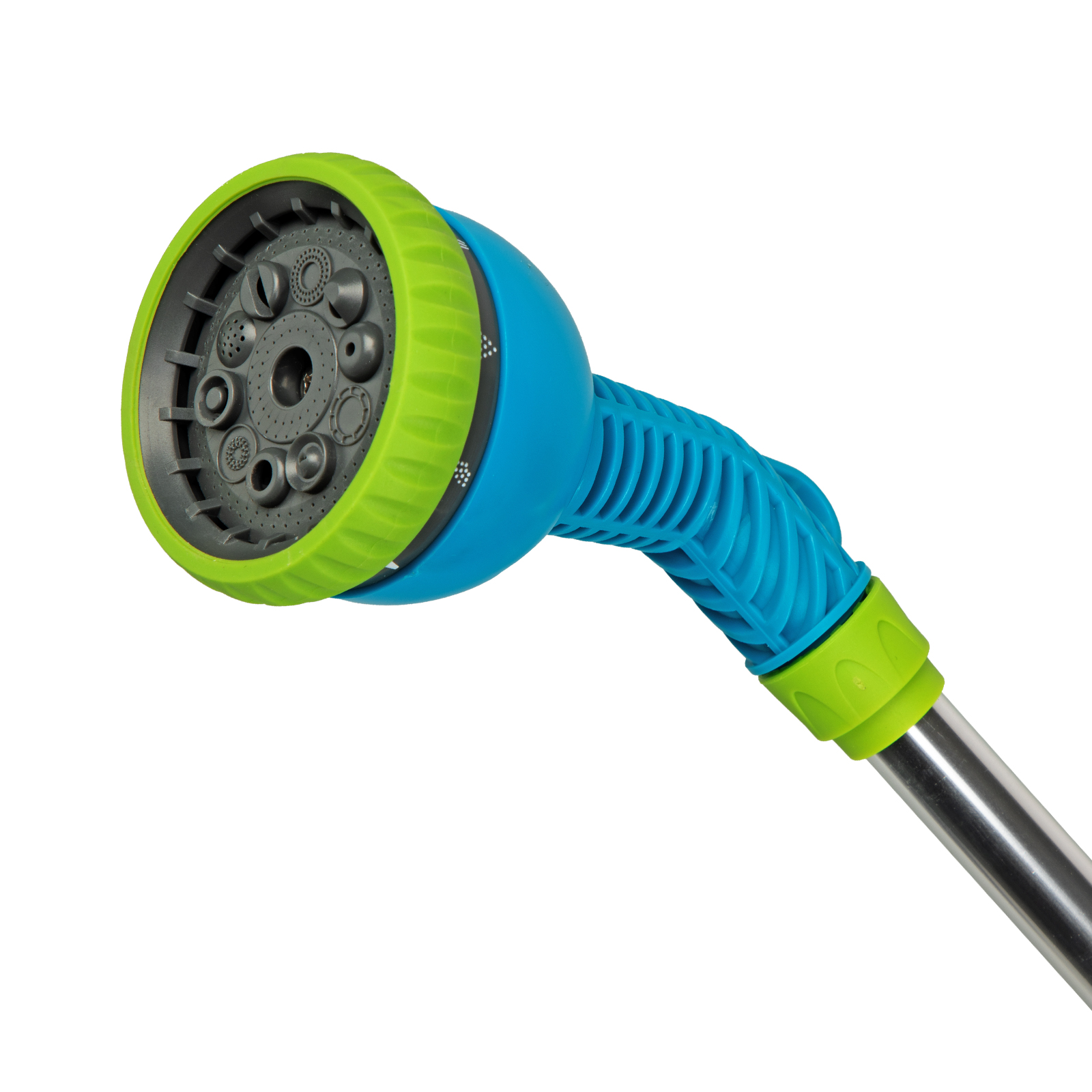 - 10 режимов полива — конусное, вертикальное и горизонтальное распыление, мягкая струя, жесткая струя, веер, душ, концентрированный душ, туман, полный полив.