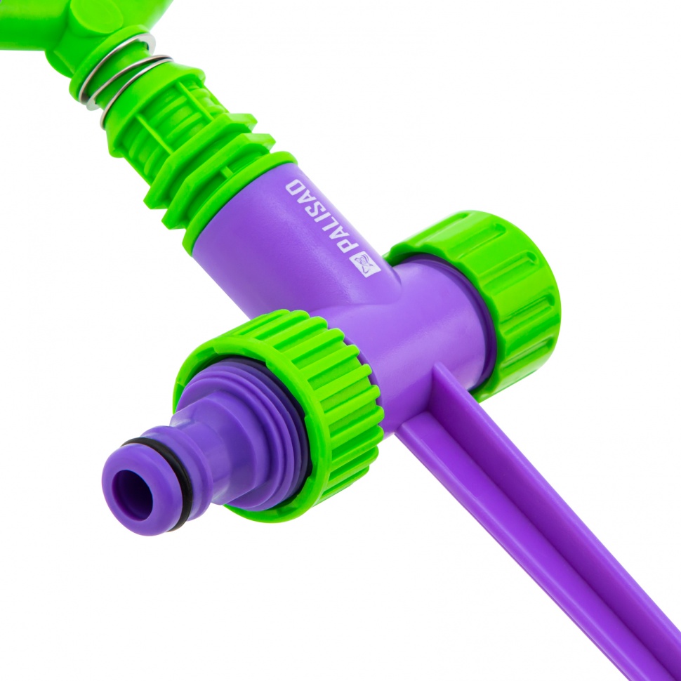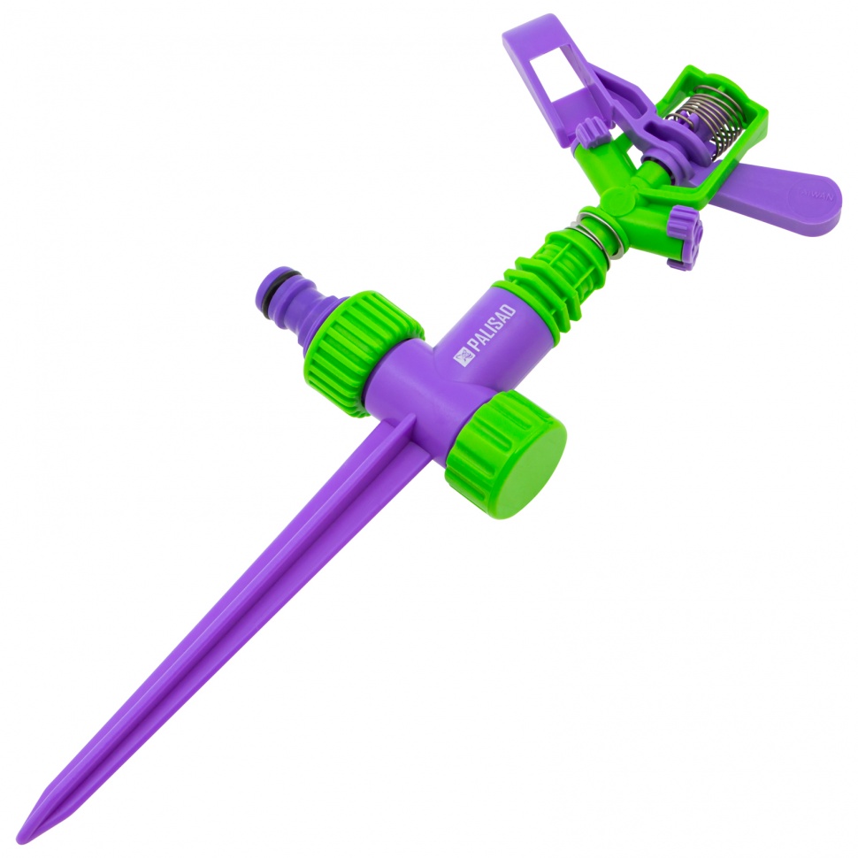 Двухсторонний импульсный разбрызгиватель Palisad 65411, пластиковый, оптимально подходит для орошения просторных площадей до 254 кв. м. Он осуществляет секторный полив с двух сторон, что повышает скорость работы. Дополнительное соединительное гнездо позволяет использовать разбрызгиватель в системах полива из нескольких модулей.