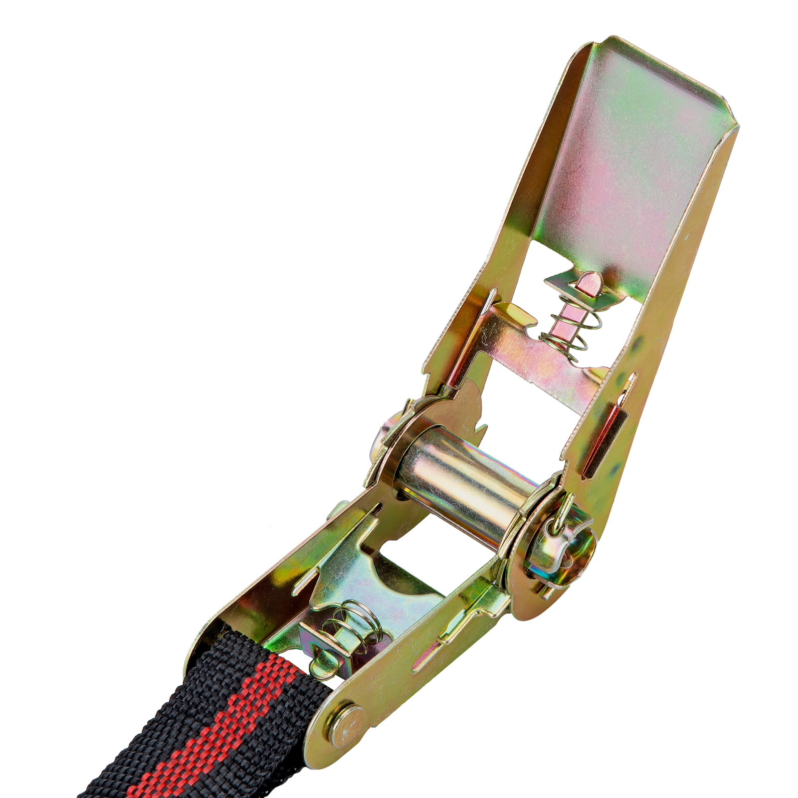 - Удобное использование — храповой механизм упрощает натягивание и надежно удерживает ленту в рабочем положении.