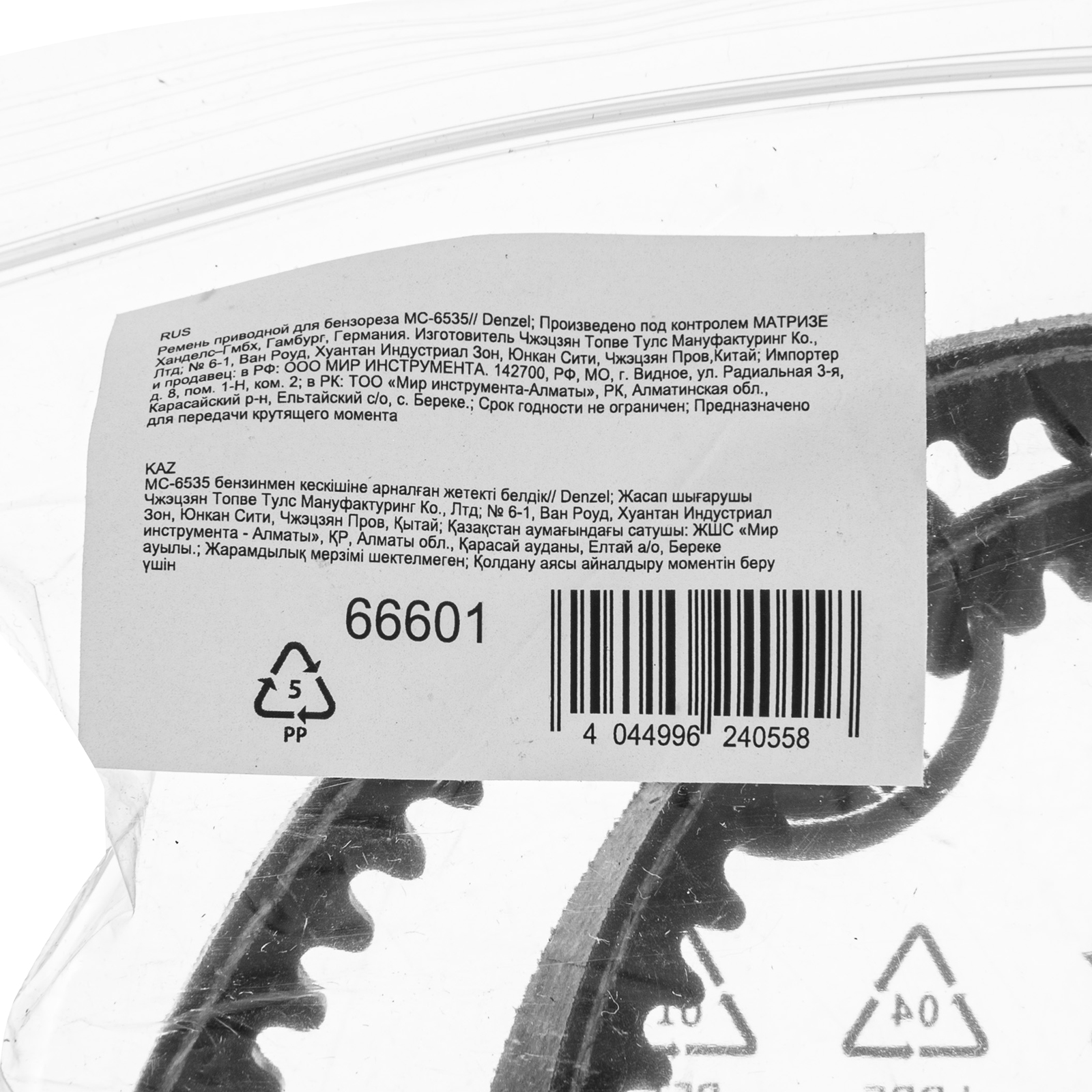 Приводной ремень Denzel 66601 передает крутящий момент с выходного вала, обеспечивая эффективное функционирование бензореза Denzel МС-6535 (арт. 66301). Позволяет восстановить работоспособность техники в случае растяжения или обрыва установленного ремня.