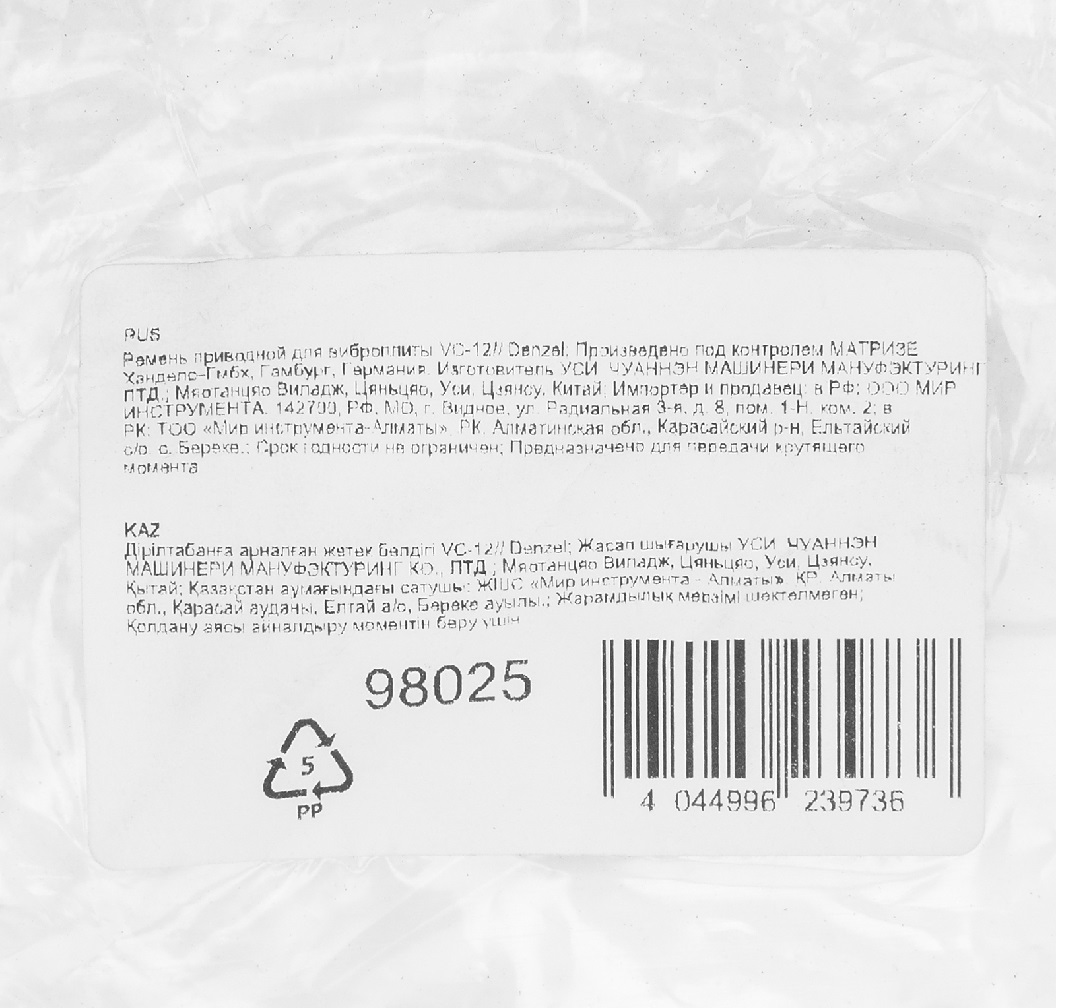 Приводной ремень Denzel 98025 передает крутящий момент с выходного вала, обеспечивая эффективное функционирование виброплиты Denzel VC-12. Позволяет восстановить работоспособность техники в случае растяжения или обрыва установленного ремня.