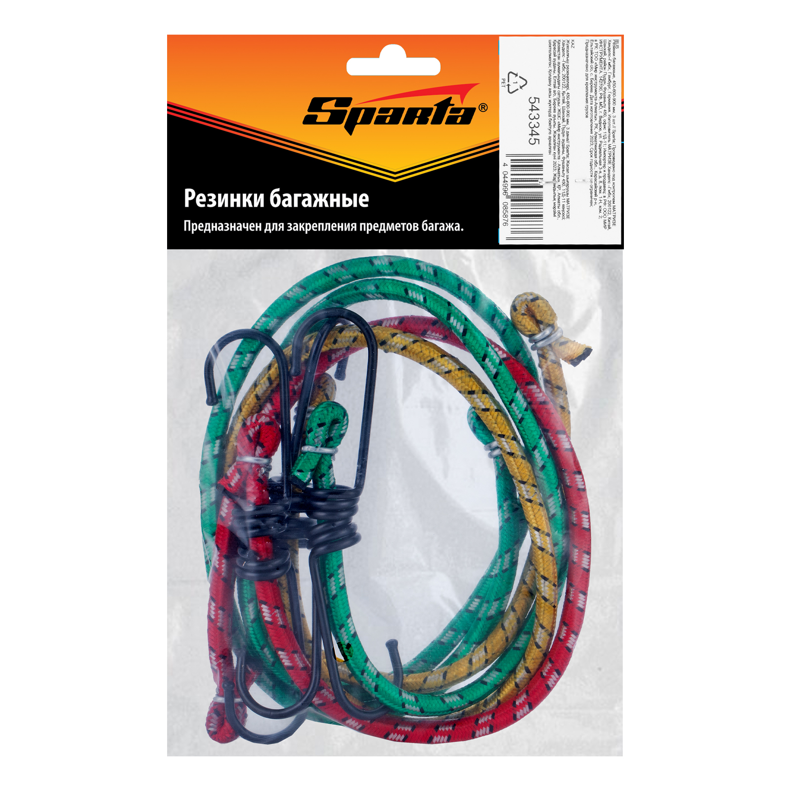 Багажные резинки Sparta 543345 входят в набор из 3 жгутов длиной 450, 600 и 900 мм, предназначенных для фиксации предметов на различных конструкциях, например, багажниках автомобилей. Надежно крепятся крюками и не дают сдвигаться грузу во время движения. Оплетка из полиэстера придает резиновым жгутам дополнительную прочность и износостойкость. Набор пригодится любителям автопутешествий.