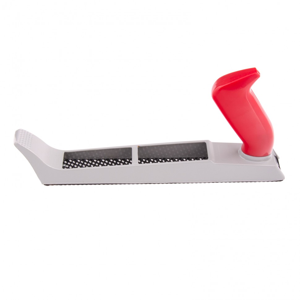 Металлический обдирочный рубанок Matrix 879145 с размером подошвы 250 х 42 мм, используется для обработки кромок панелей из гипсокартона, пластмассы, фибергласа и мягкой древесины с целью их дальнейшей стыковки. Выравнивает неровно обрезанные кромки отделочных материалов, что облегчает их монтаж. Корпус инструмента выполнен из алюминиевого сплава, поэтому он очень прочный и долговечный. Благодаря удобной рукоятке работать с рубанком комфортно.
