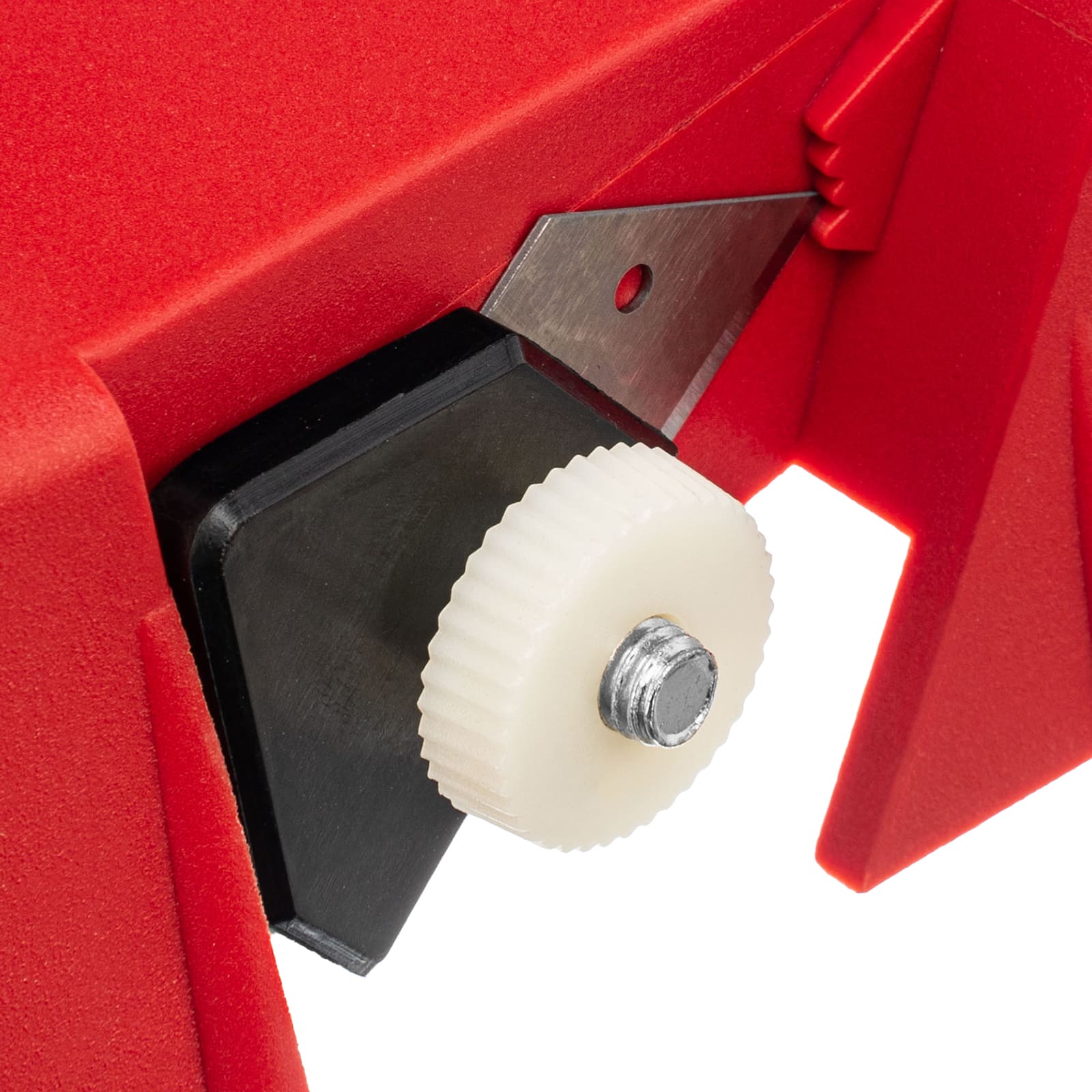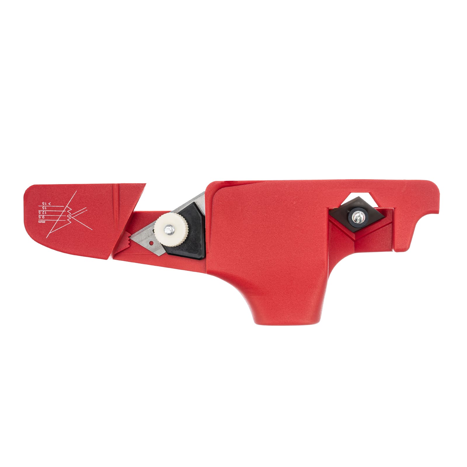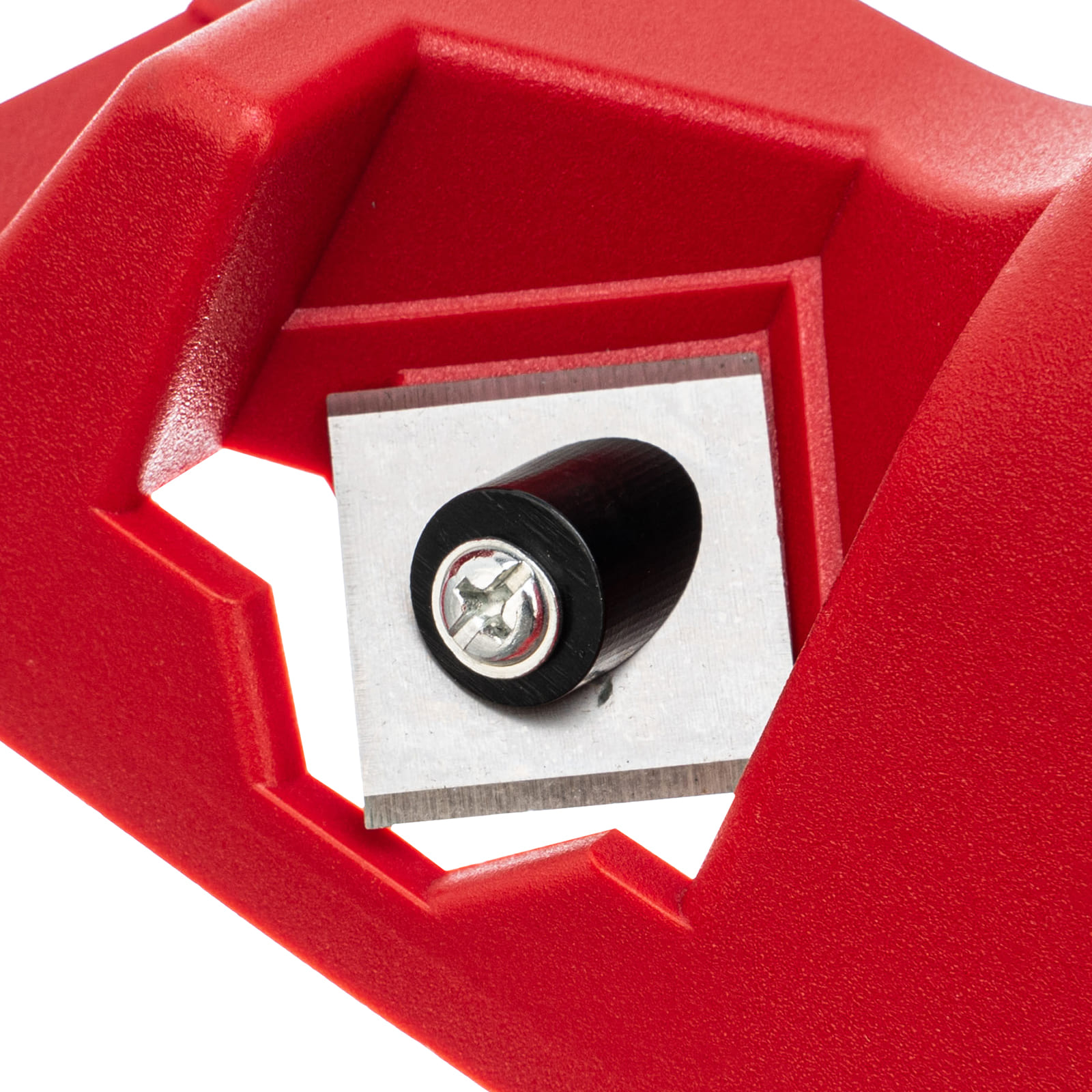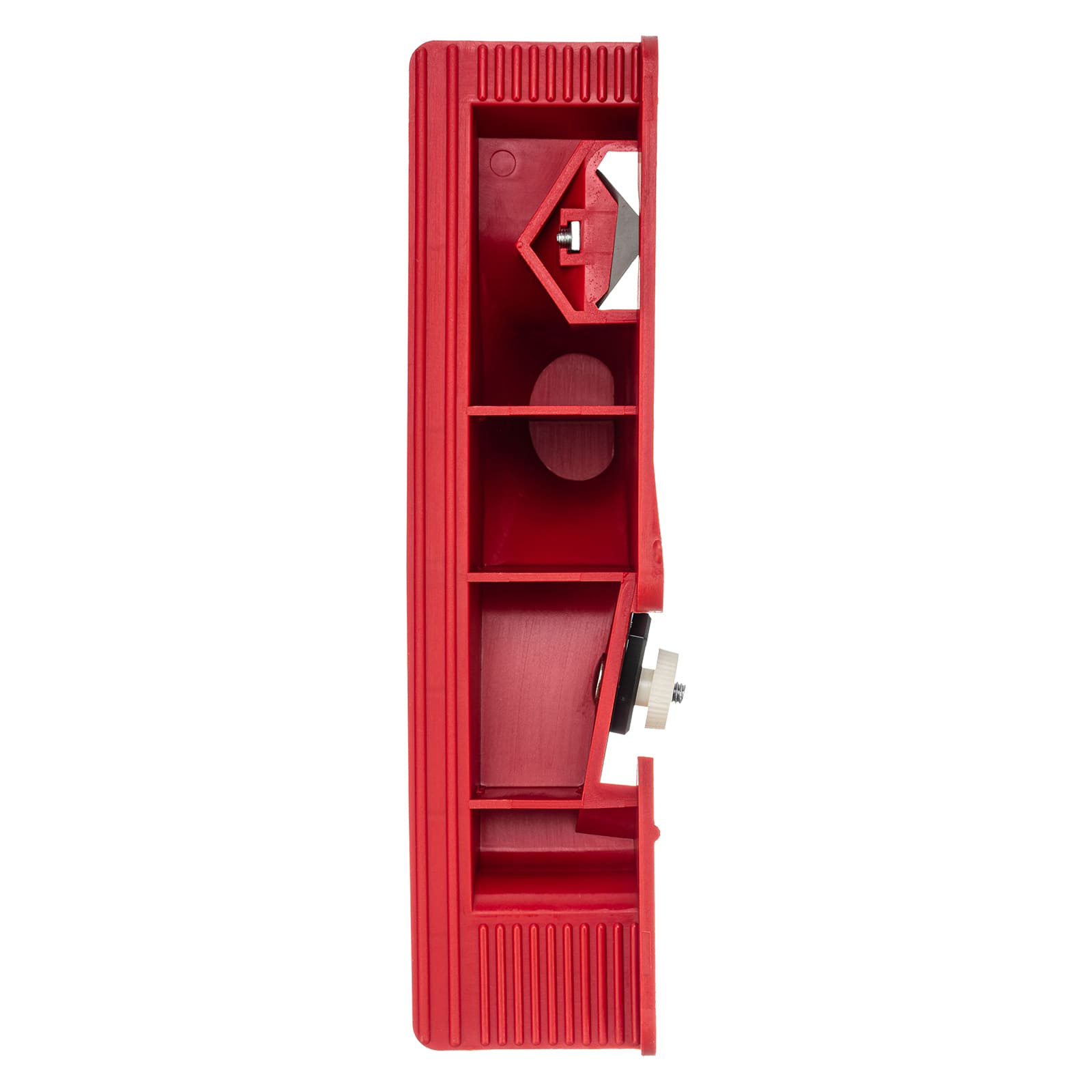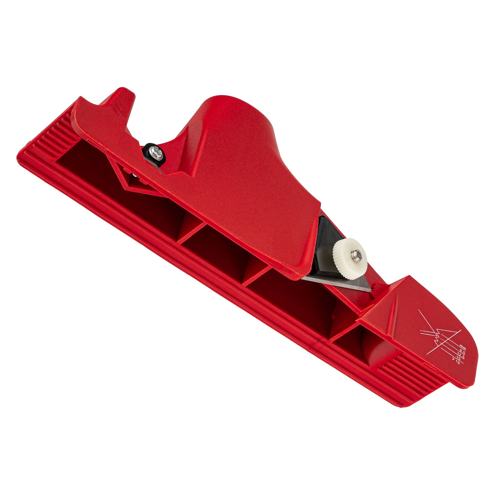 Пластиковый кромочный рубанок для гипсокартона MTX 879055 позволяет обрезать края гипсокартонных листов под углом 22,5° или 45°, для чего на нем установлены 2 ножа. Положение переднего лезвия, снимающего фаску под углом 22,5°, регулируется в зависимости от толщины листа — 9,5, 12,5, 15 мм или более. Инструмент используется для проведения отделочных работ.