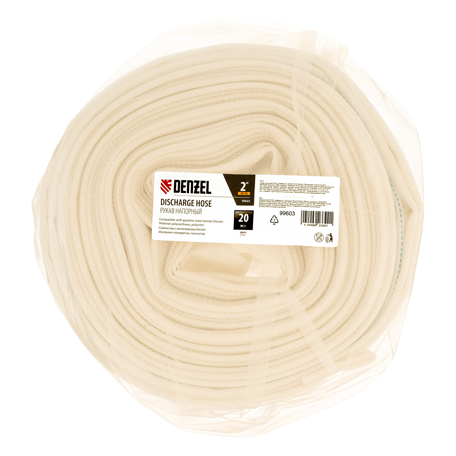 Напорный рукав Denzel DH-50 99603 диаметром 2" и длиной 20 м выдерживает рабочее давление 1 МПа и предназначен для подачи воды от мотопомпы к месту водоразбора или тушения пожара. Совместим с мотопомпами Denzel 99201 и 99203.