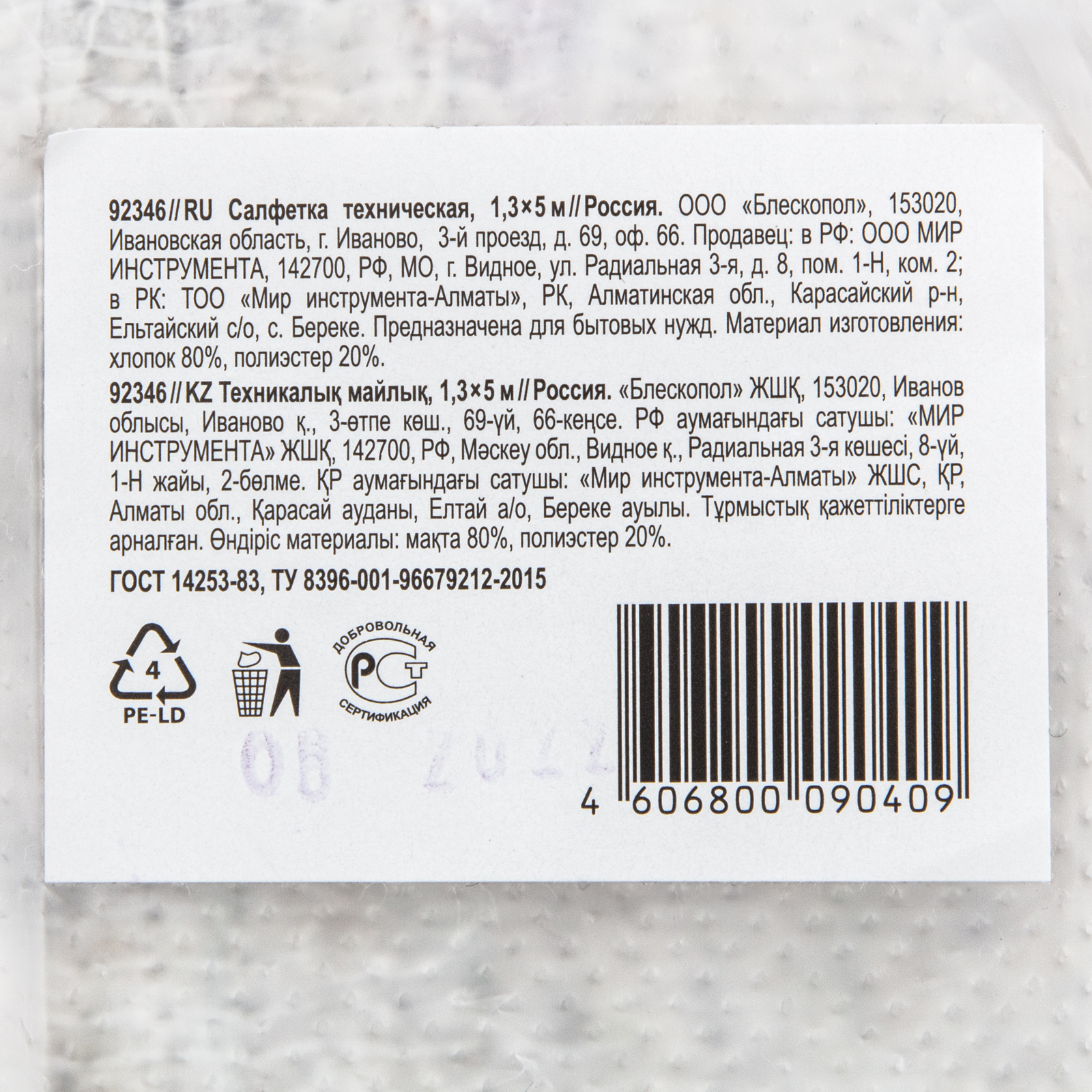 Полотно - 1 рулон, Упаковка |