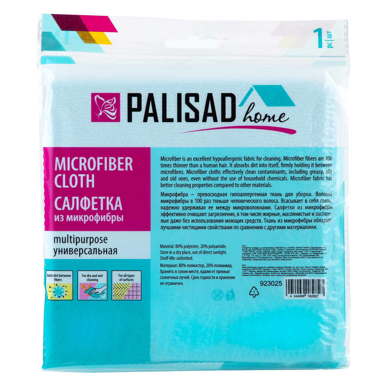 Универсальная салфетка из микрофибры Palisad Home 923025 размером 300 х 300 мм, голубая, позволяет производить качественную сухую и влажную уборку помещений. Пригодится как для бытового, так и профессионального повседневного использования.