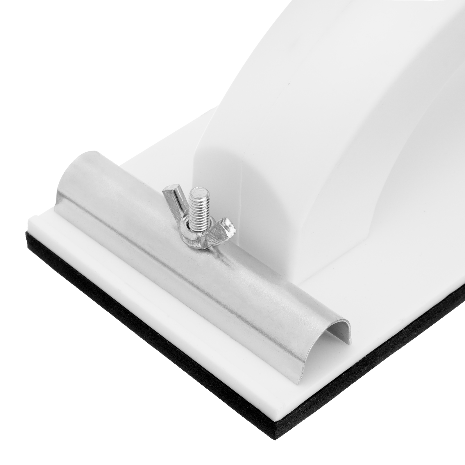 - Надежная фиксация абразивного материала — благодаря винтовым зажимам сетка или шлифлист не смещается во время работы.