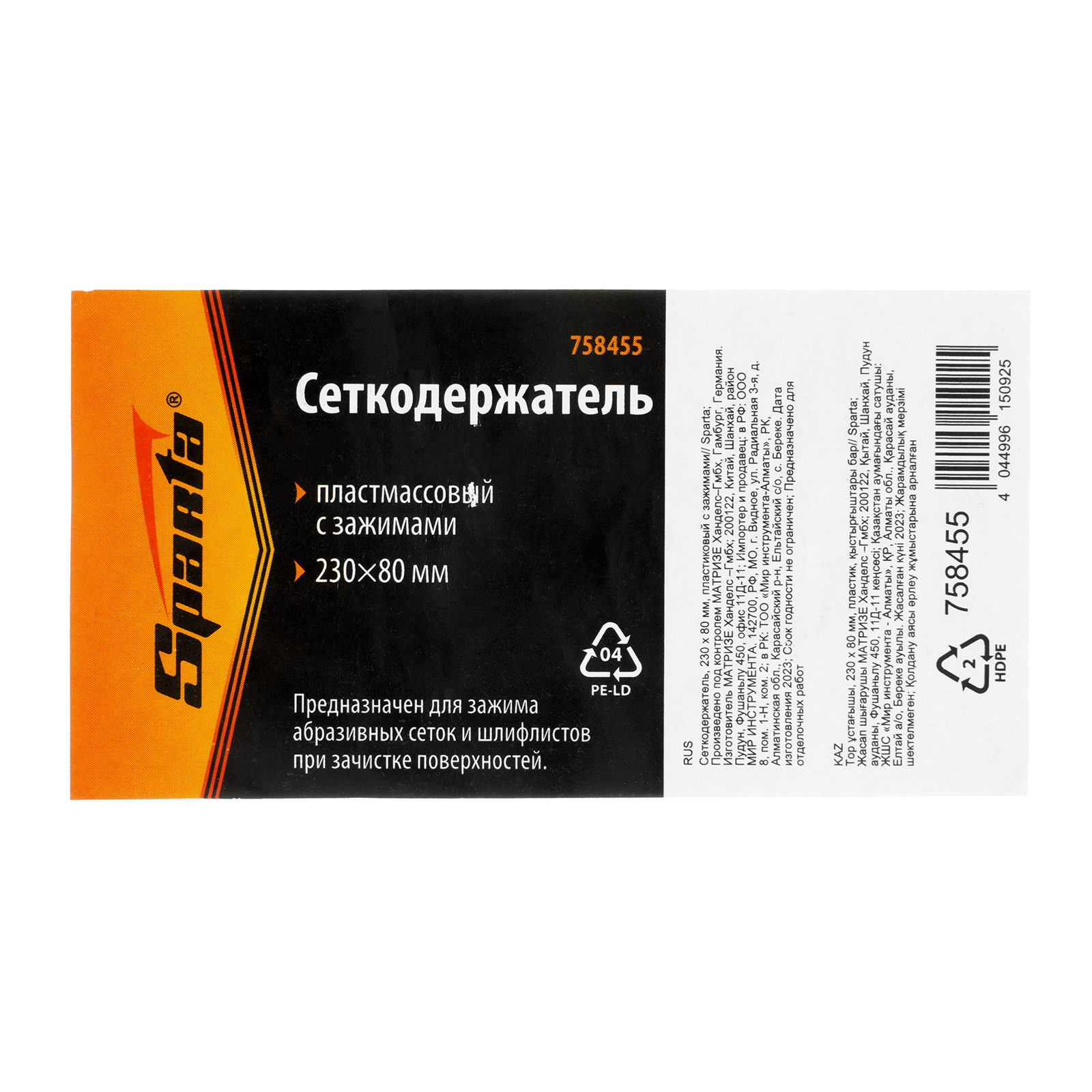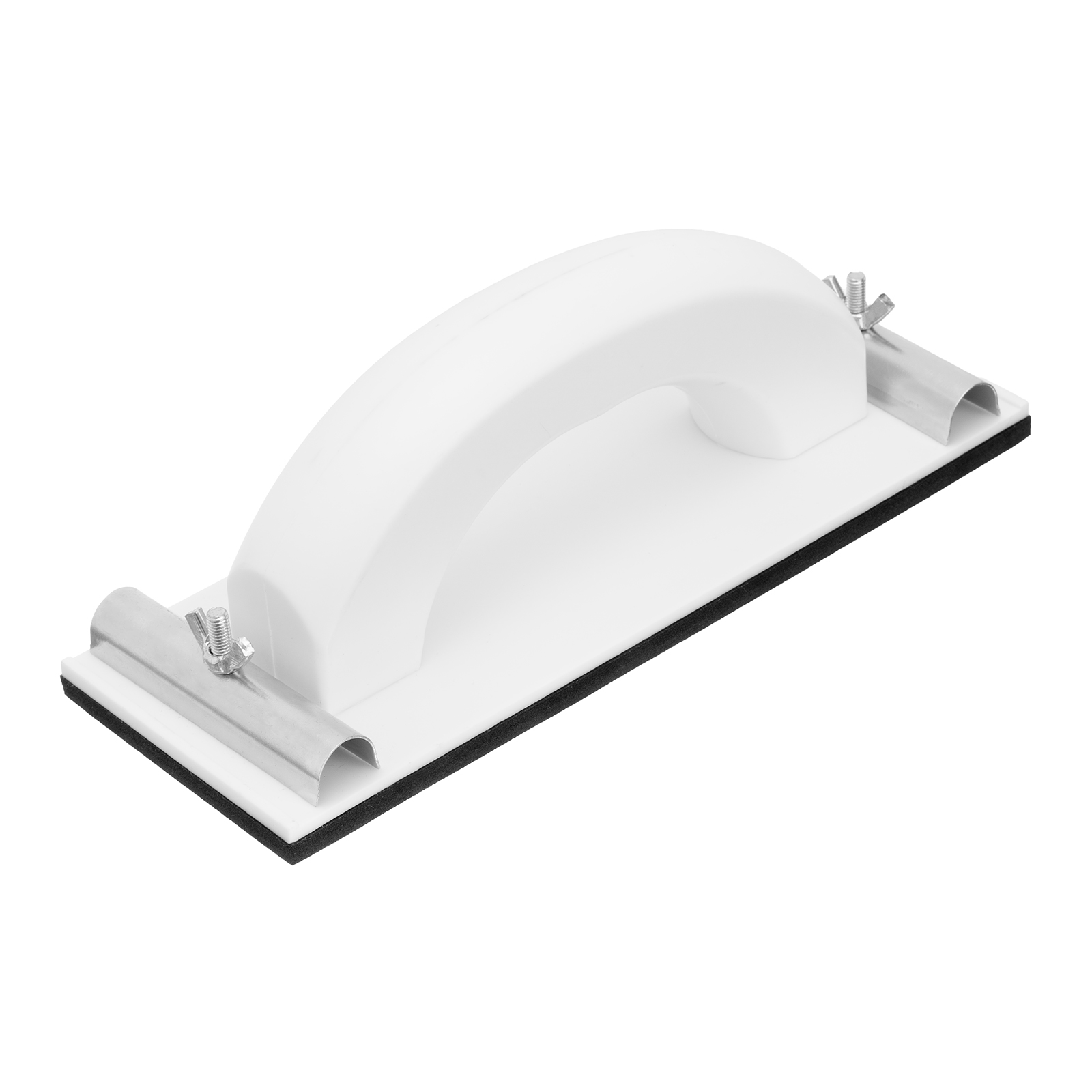 Пластиковый сеткодержатель Sparta 758455 с подошвой 230 х 80 мм, с зажимами, используется для ручного шлифования деревянных, шпатлеванных, металлических, пластмассовых и прочих твердых поверхностей. Сеткодержатель фиксирует абразивную стеклосетку или шлифлист и позволяет удалять старые отделочные покрытия, подготавливать поверхность под покраску, а также выполнять чистовую обработку.