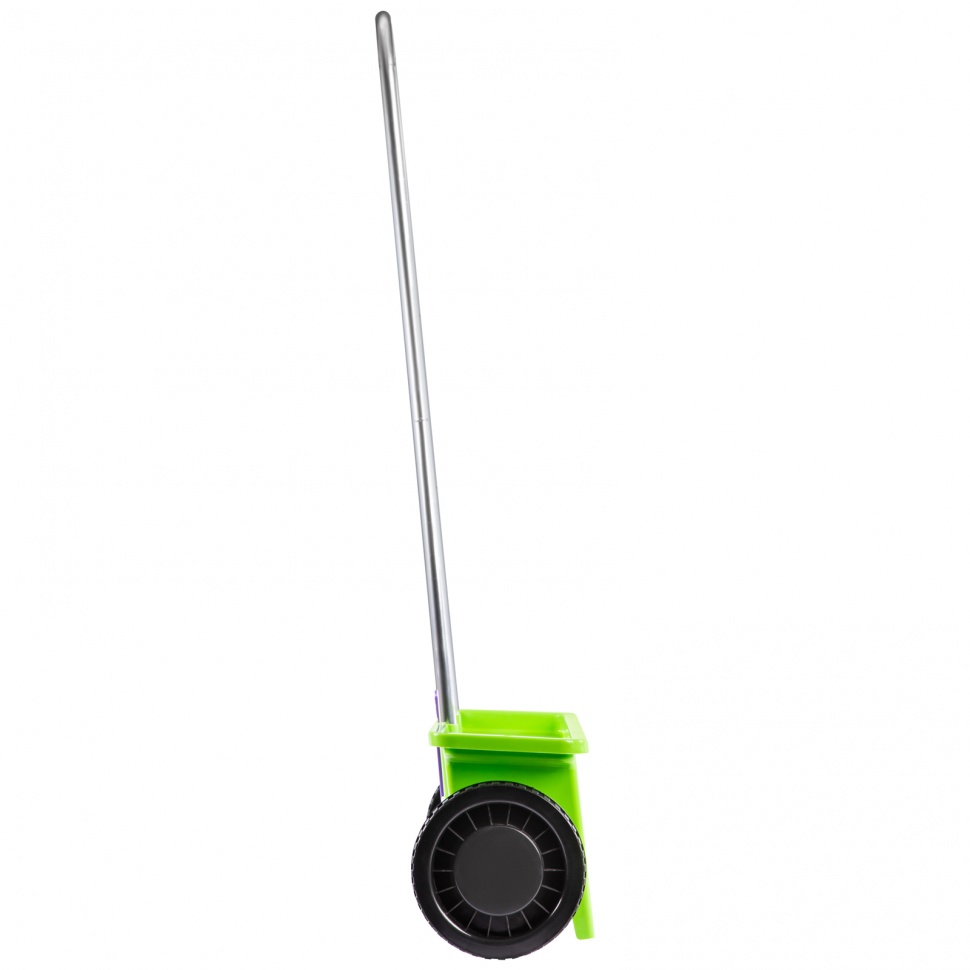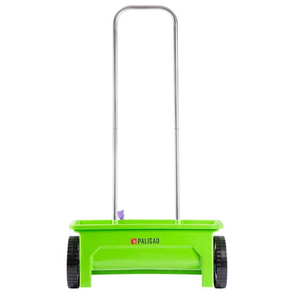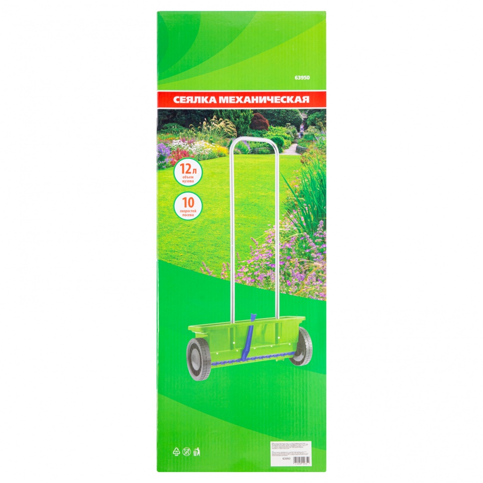 Механическая сеялка на колесах Palisad 63950 вместимостью 12 л, с ручкой, поможет равномерно распределить семена в почве, внести удобрения или рассыпать противогололедный реагент. Интенсивность посева можно регулировать при помощи дозатора. Вместимость емкости составляет 12 л, что позволяет обработать участок площадью до 300 кв.м. Сеялка будет полезна владельцам дачных участков.