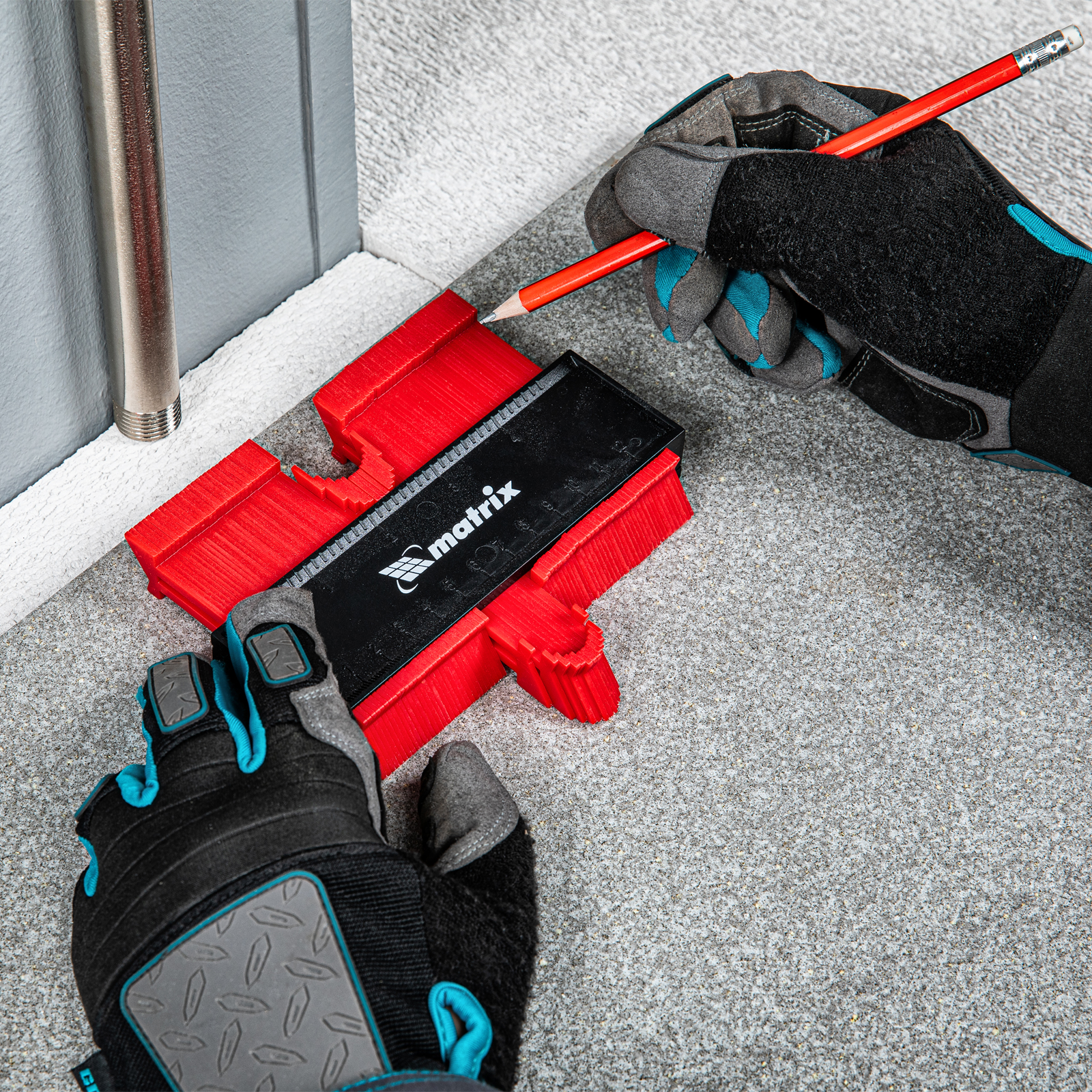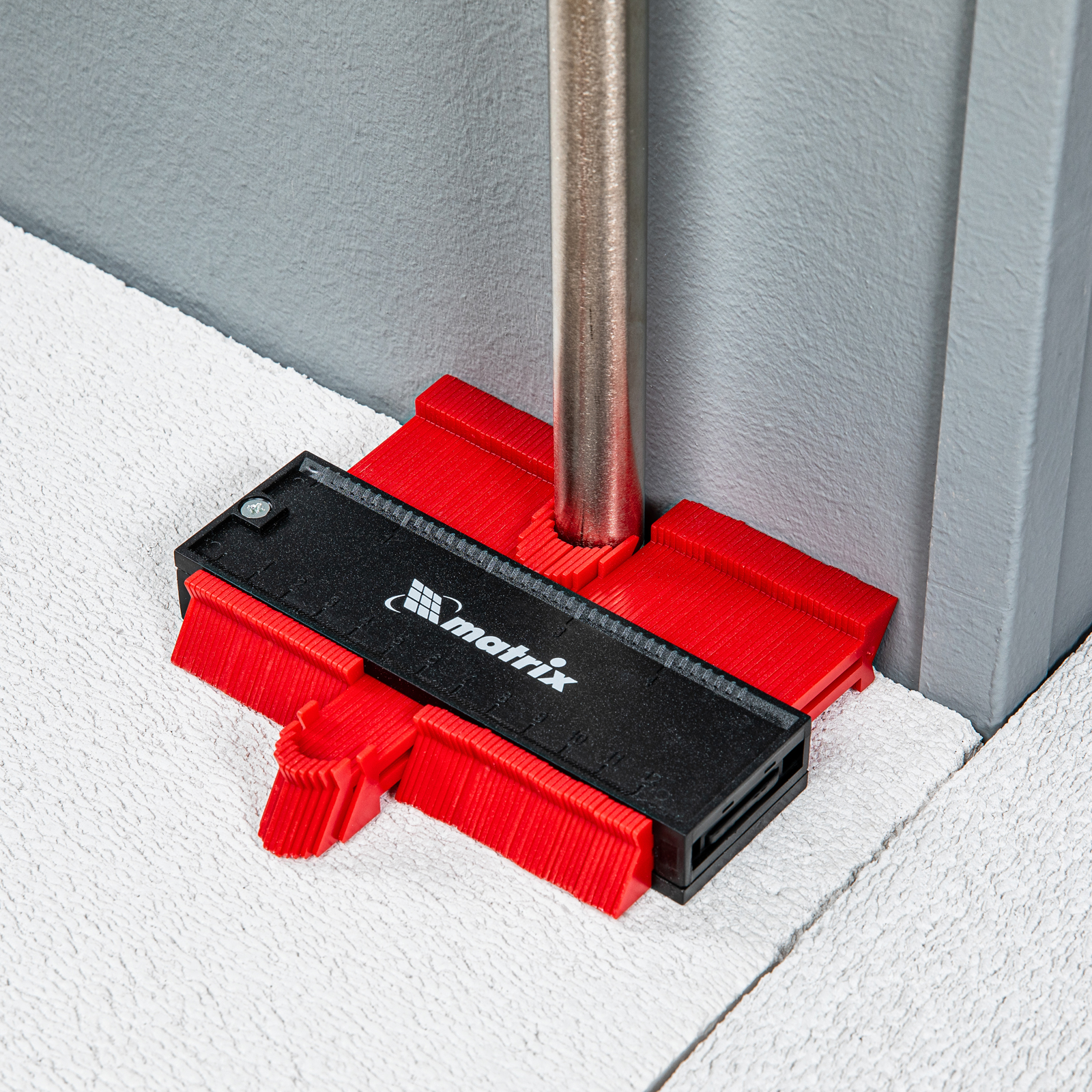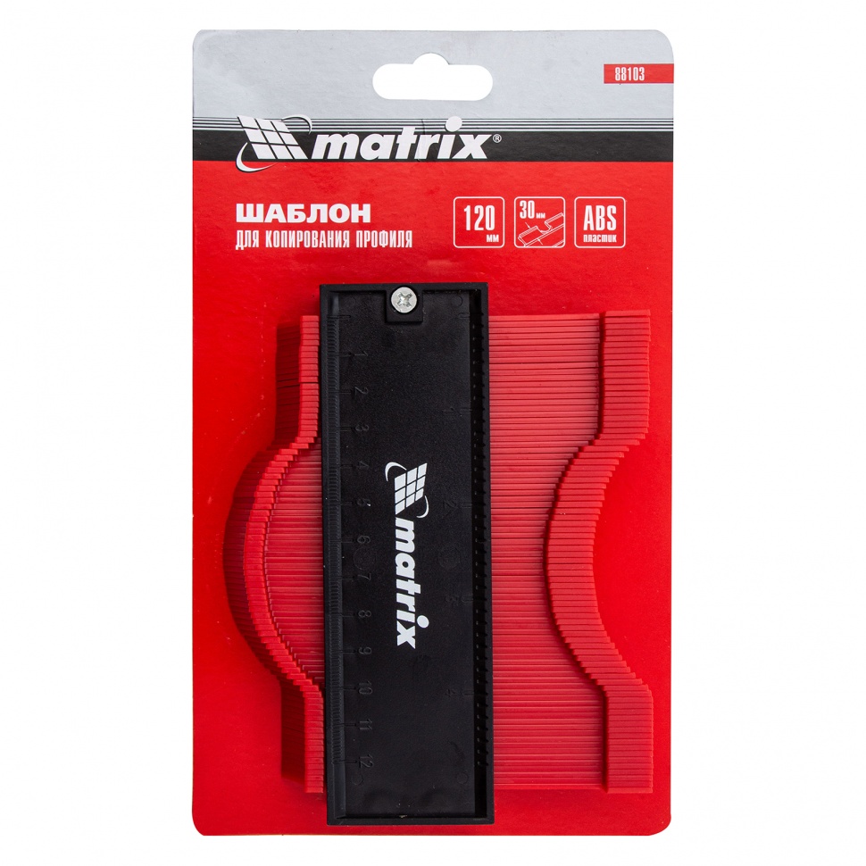 Пластиковый шаблон для копирования профиля Matrix 88103 предназначен для копирования и переноса контуров различных форм. Шаблон необходим для точной подрезки отделочных материалов (ламината, линолеума, кафельной плитки, гипсокартона и др.) при обходе труб водоснабжения, углов и других рельефных препятствий. Перенос контуров осуществляется при помощи выдвижных пластиковых пластин. Шаблон оснащен измерительной шкалой длиной 12 см.