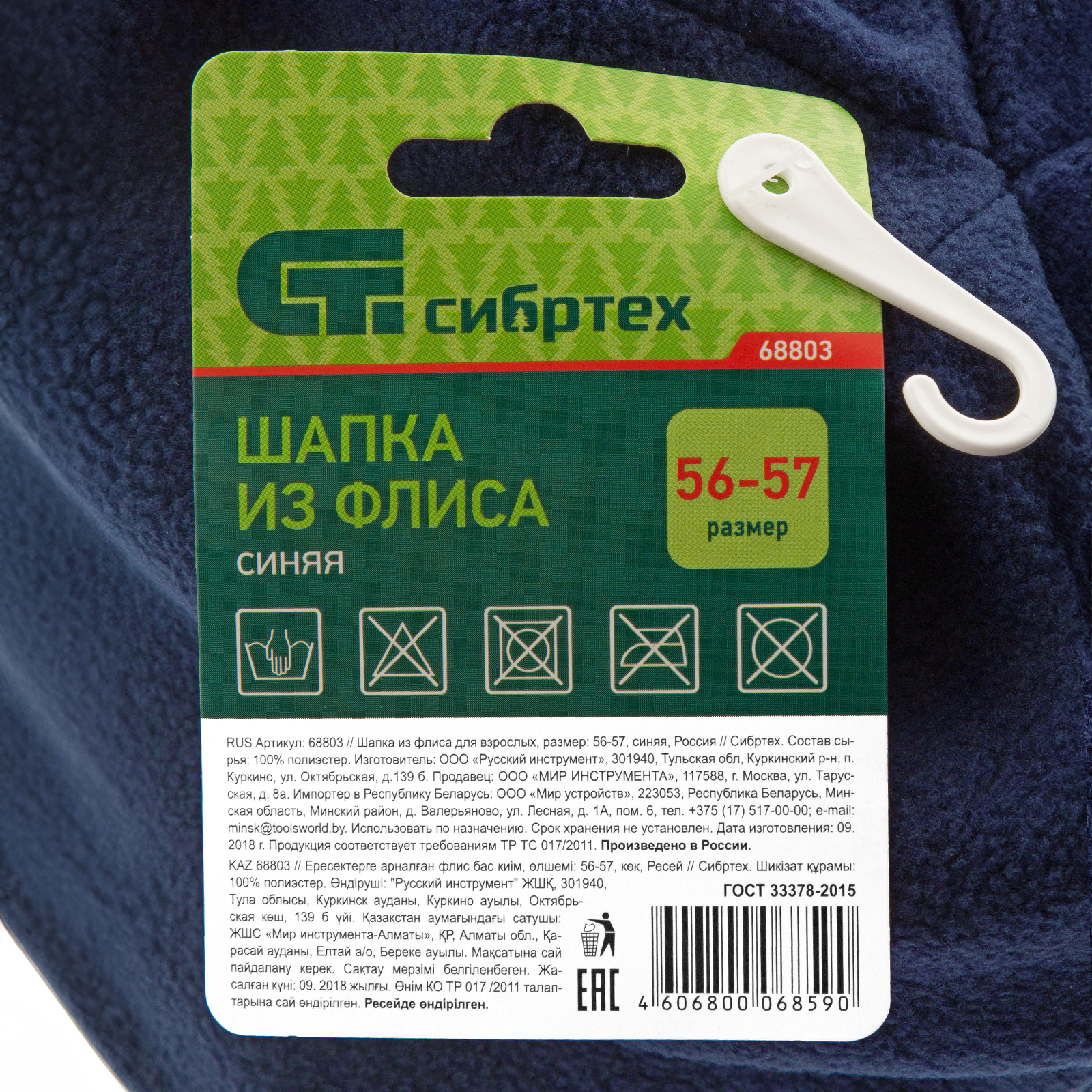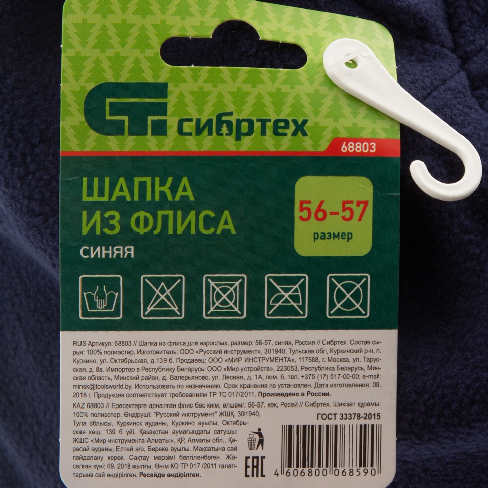Шапка из флиса для взрослых Сибртех 68803, синего цвета, размер 56-57, защищает голову от теплопотерь в холодное время года. Изготовлена из эластичного материала, легко тянется и быстро надевается. Даже если шапка намокнет, она не перестанет сохранять тепло. Пригодится для прогулок в городе и на природе, во время работы вне помещения.