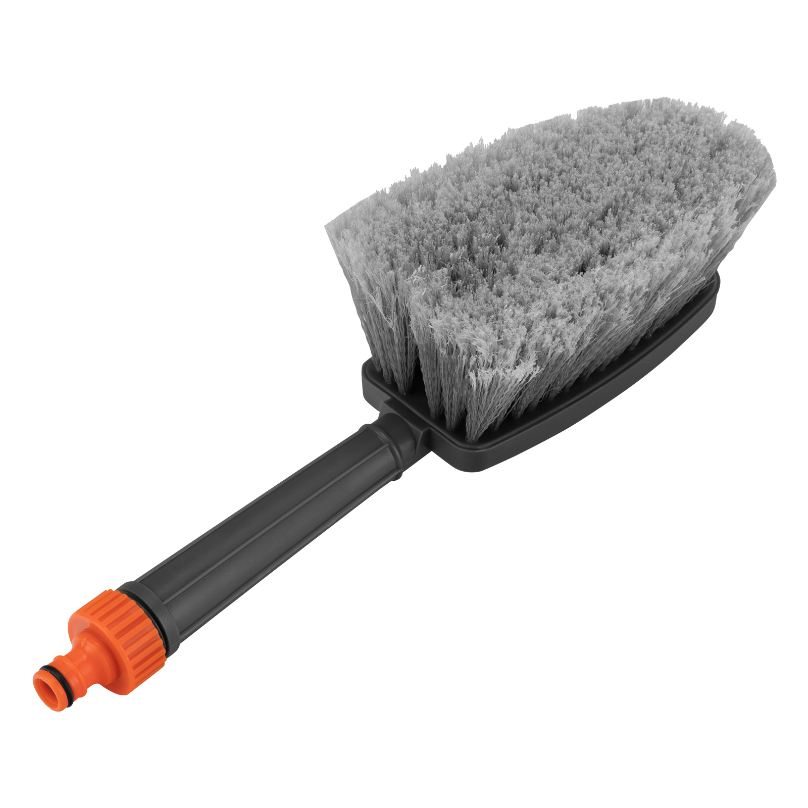 - Эффективность — при подключении к источнику водоснабжения вода подается на рабочую часть щетки и смывает частицы грязи с поверхности кузова.
