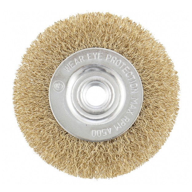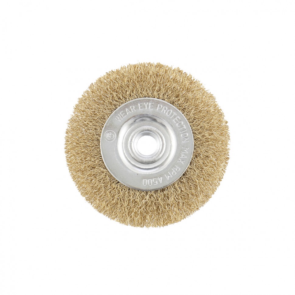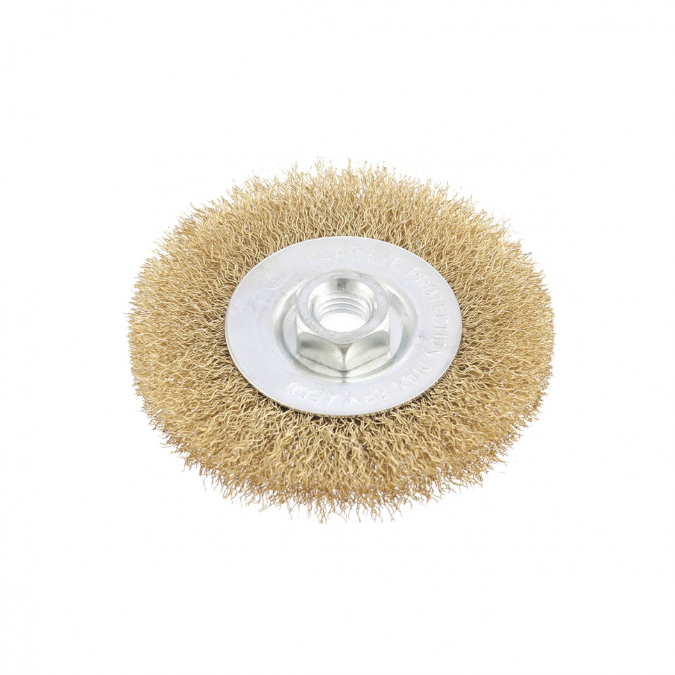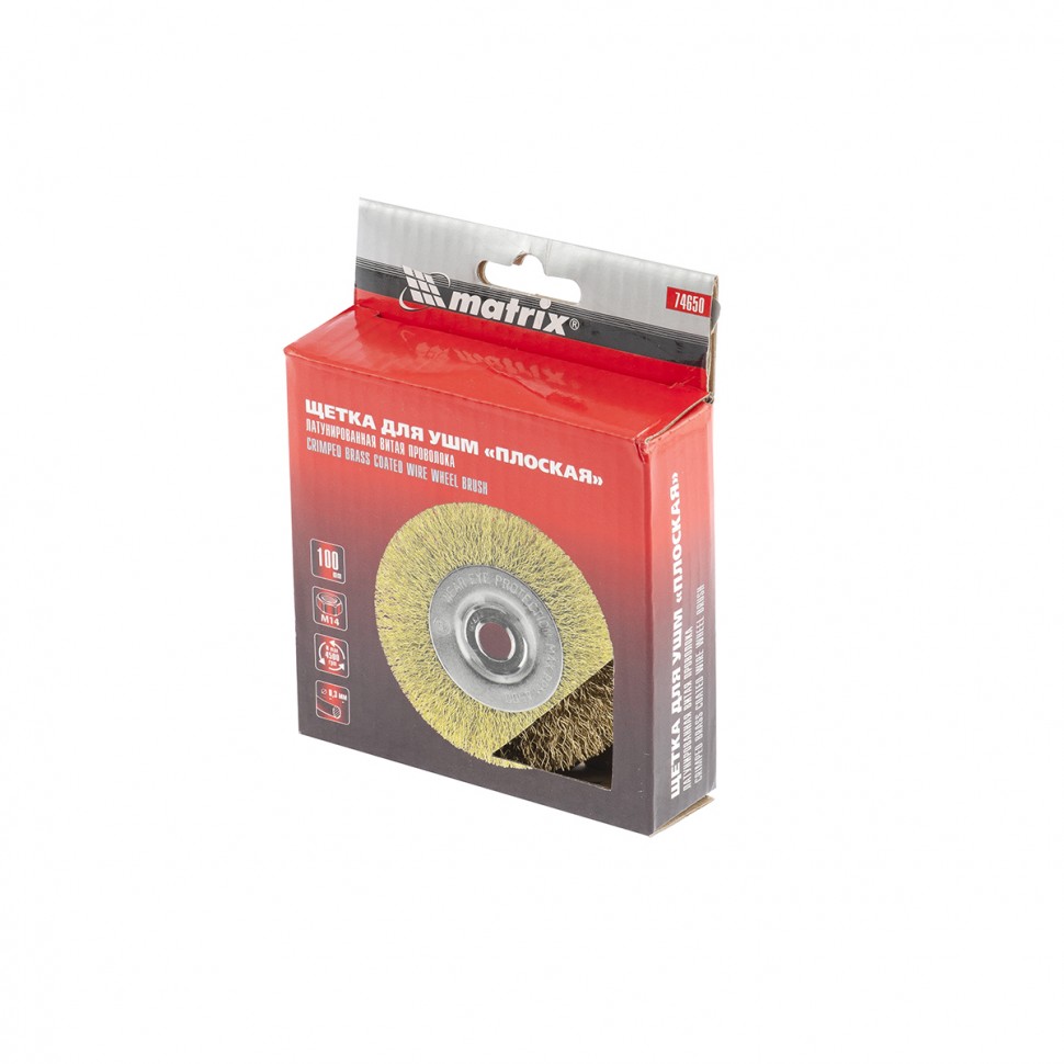 Плоская щетка Matrix 74650 диаметром 100 мм, с щетиной из латунированной витой проволоки, крепится к валу УШМ с помощью гайки М14. Используется для щадящей обработки поверхностей, снятия тонкого слоя ржавчины, лакокрасочных покрытий, удаления въевшихся загрязнений. Плоской щеткой удобно работать в труднодоступных местах: углах и изгибах. При эксплуатации на рекомендованной скорости 8500 об/мин оснастка прослужит долго.