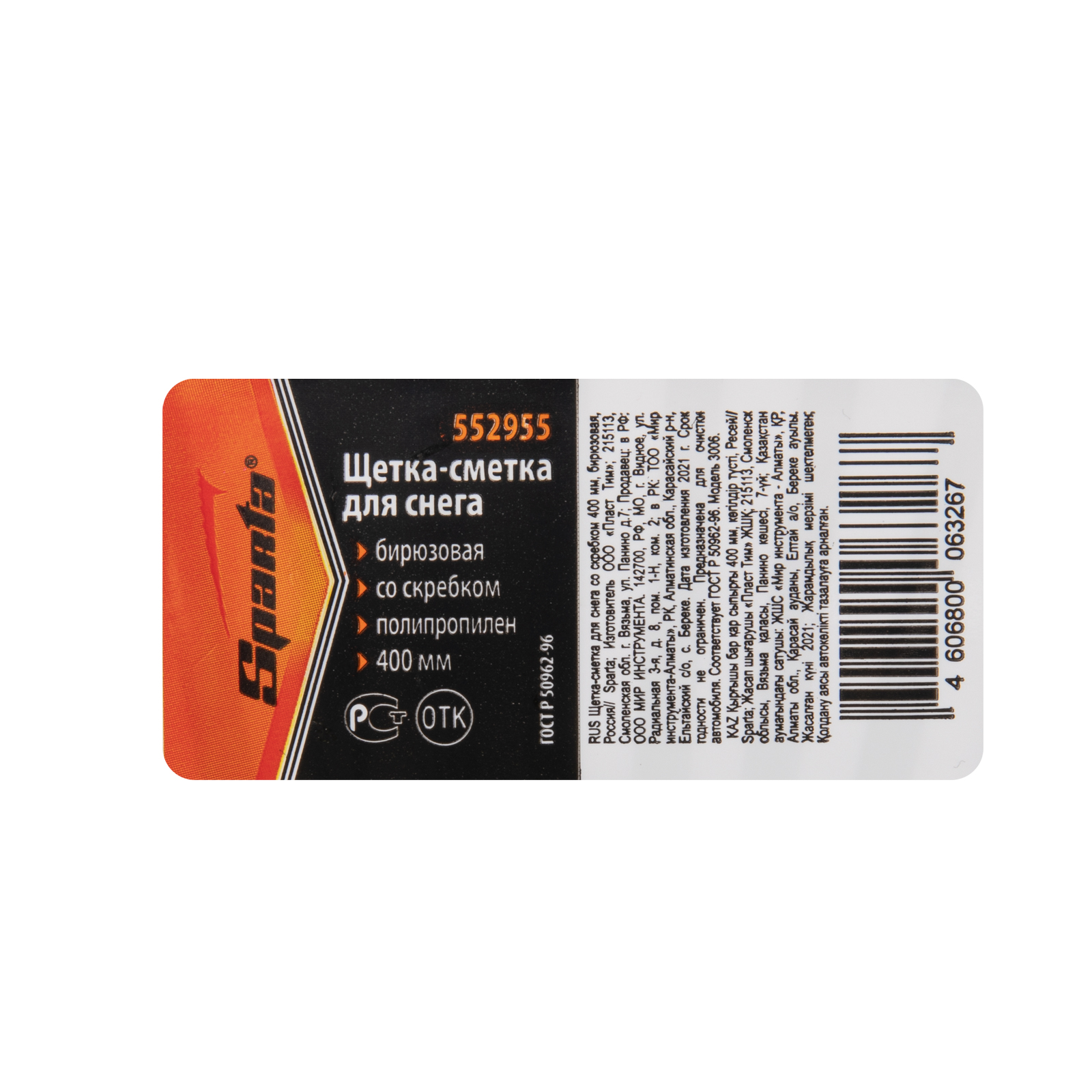 Бирюзовая щетка-сметка для снега со скребком Sparta 552955 длиной 400 мм применяется для чистки автомобиля после снегопада. Щетина средней жесткости не царапает лакокрасочное покрытие кузова, а скребок шириной 100 мм эффективно удаляет наледь со стекол. Щетка-сметка будет полезна автолюбителям.