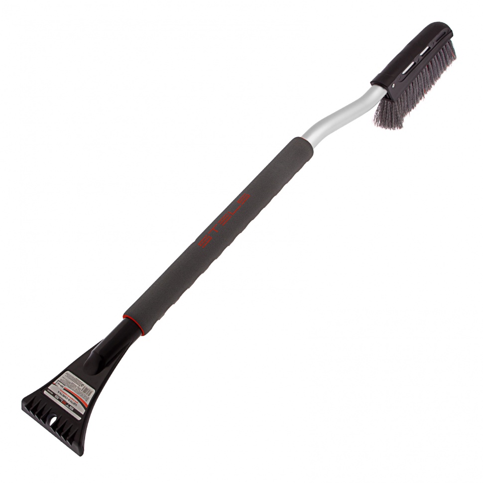 Щетка-сметка для снега со скребком Stels 55300 длиной 925 мм используется для чистки автомобиля в зимний период. Она не царапает лакокрасочное покрытие, поскольку ее щетина имеет распушенные кончики. Благодаря удлиненной рукоятке удобно чистить капот и крышу автомобиля. Щетка со скребком пригодится автолюбителям.
