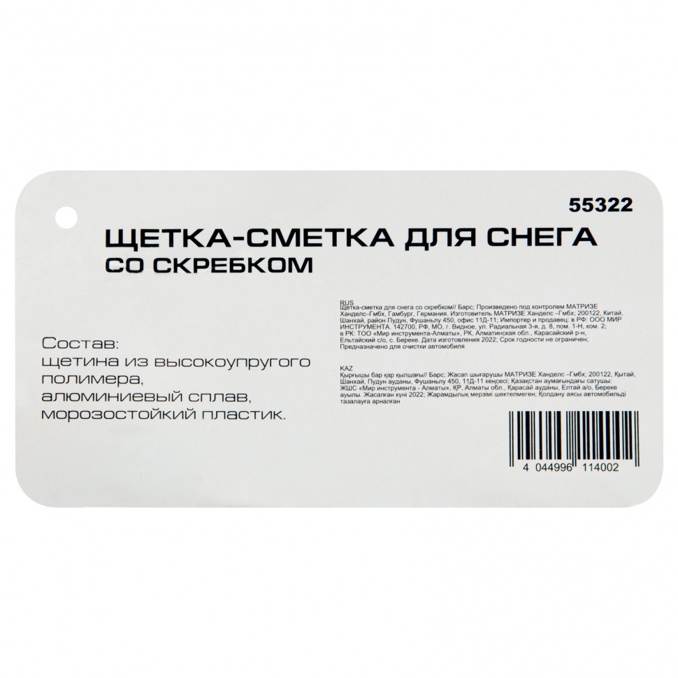 Щетка-сметка для снега со скребком Барс 55322 — инвентарь для чистки автомобиля от снега и наледи. Щетка-скребок изготовлена из морозоустойчивого пластика и выдерживает многократное использование. Пригодится автолюбителям.