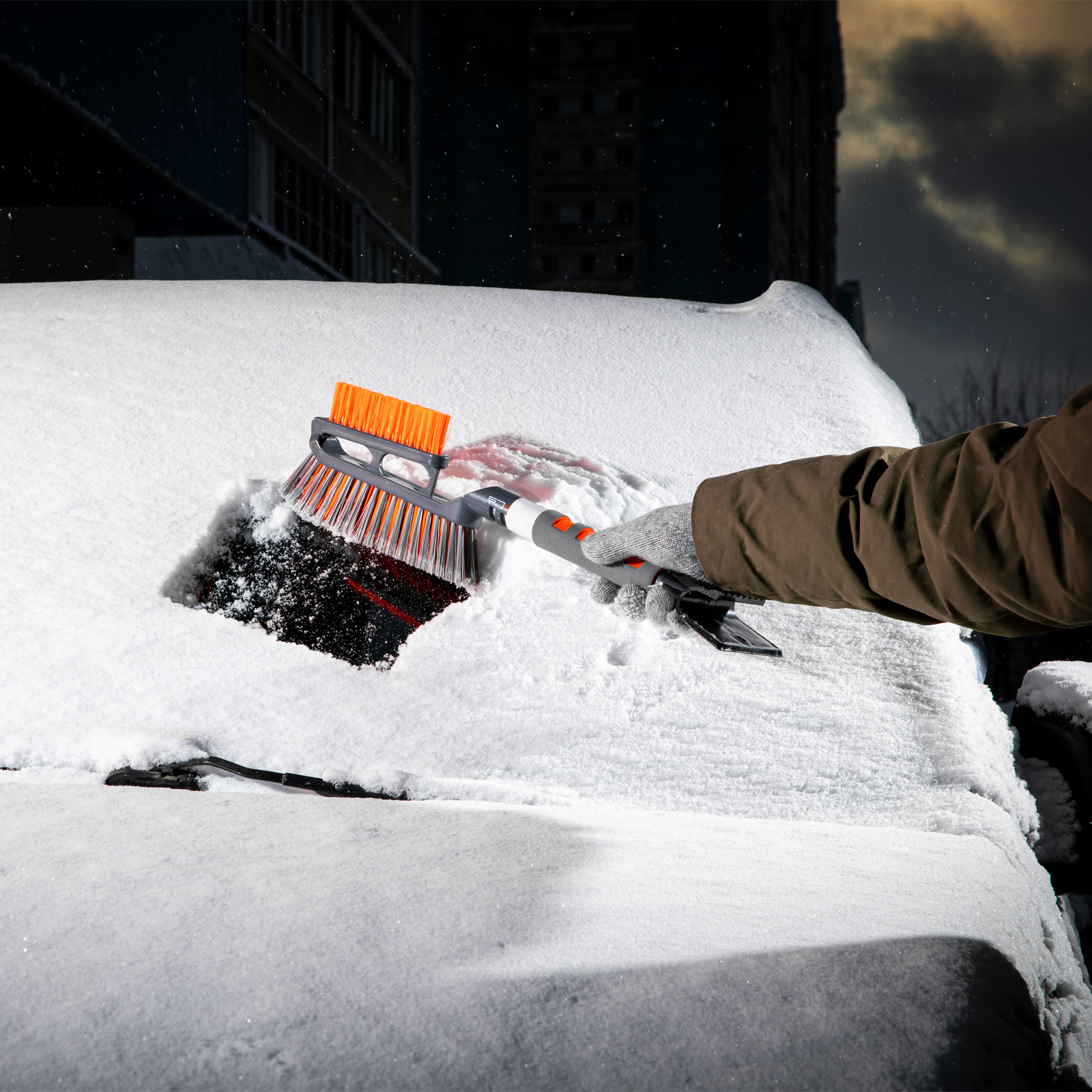 - Если очистка авто занимает много времени, рука не устает, поскольку щетка со скребком весит всего 270 г.