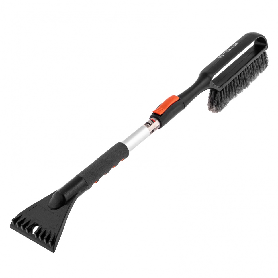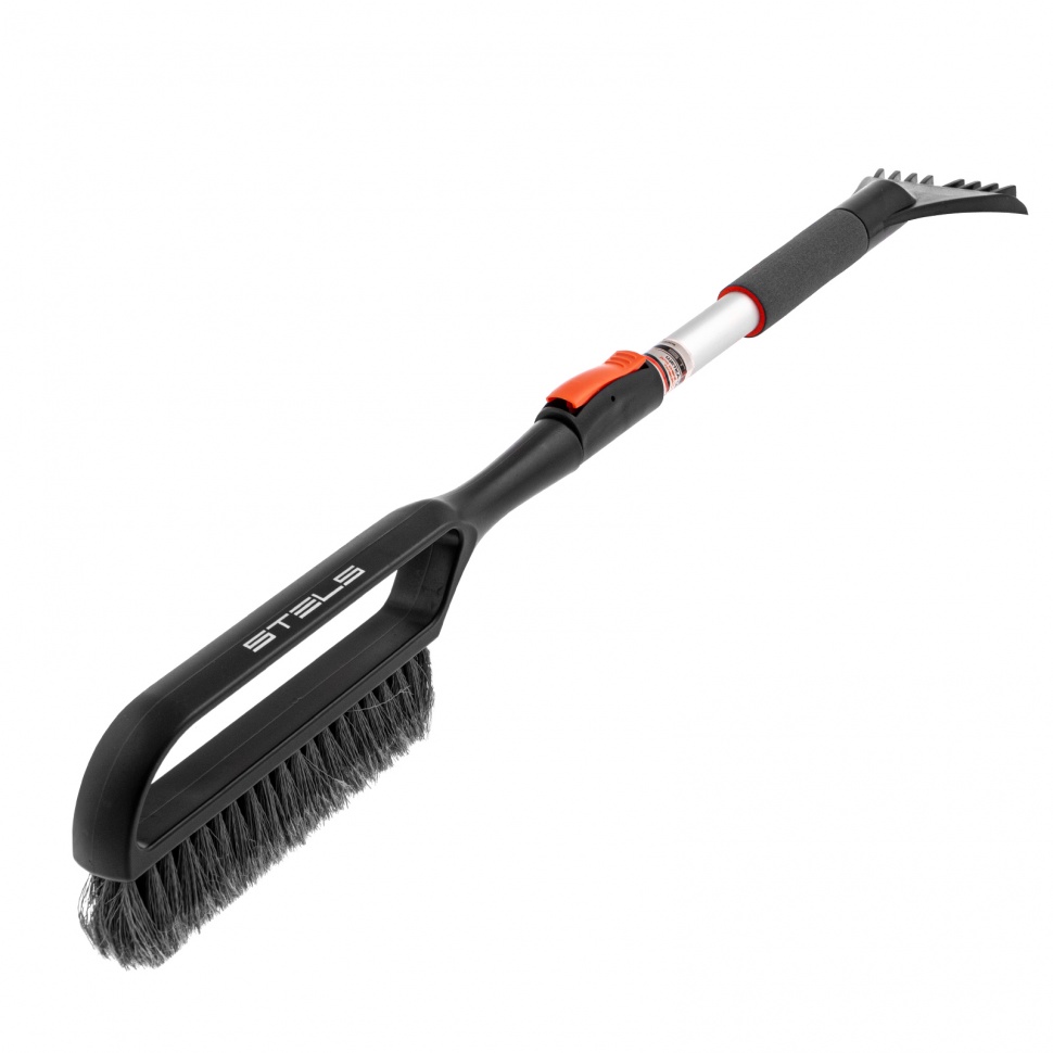 Телескопическая щетка-сметка для снега со скребком Stels 55306, длину которой можно увеличить с 770 до 990 мм, помогает быстро очистить автомобиль от снега и наледи. Раздвижная рукоятка облегчает чистку капота и крыши. Щетка будет полезна автолюбителям.