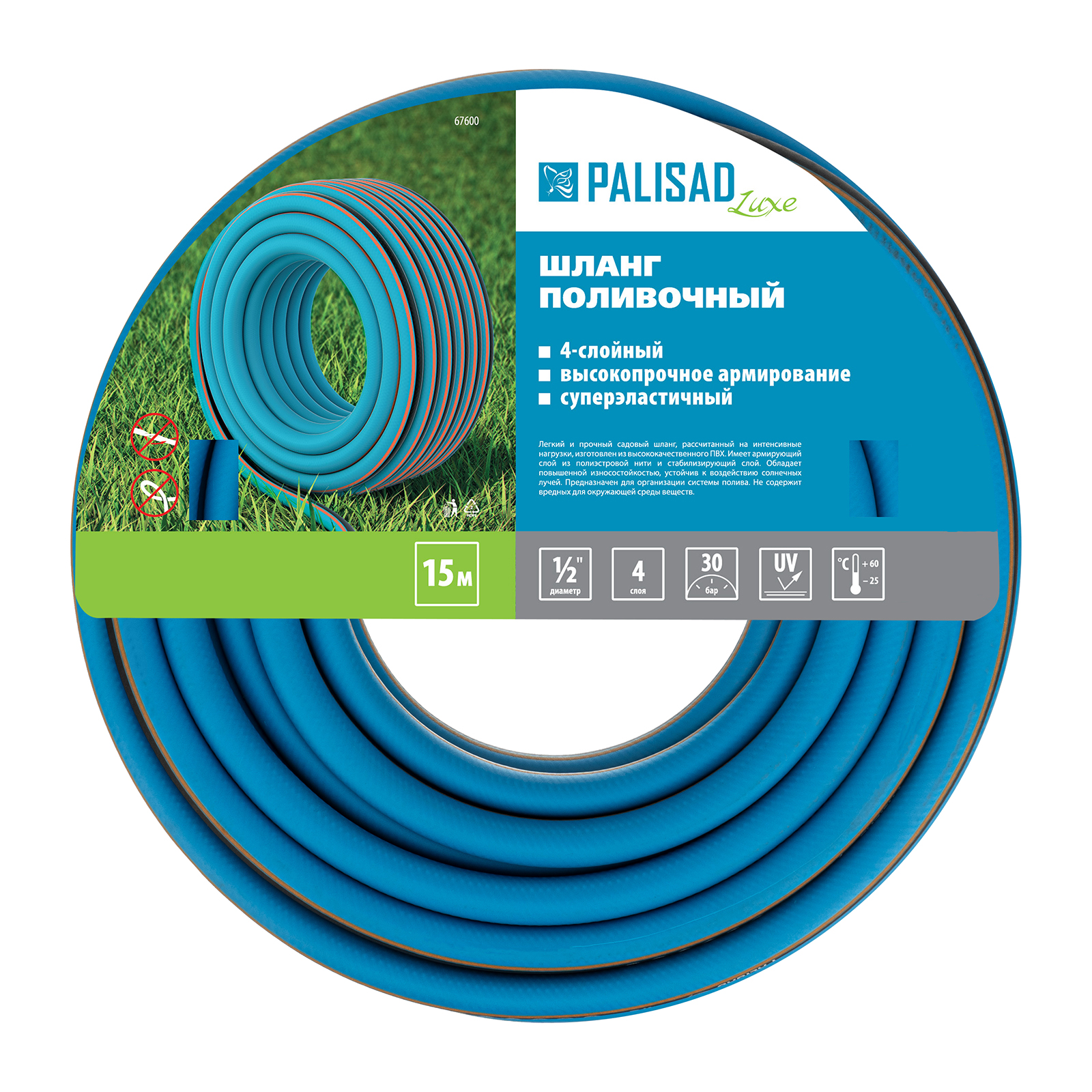 Армированный поливочный шланг Palisad LUXE 67600 длиной 15 м и диаметром 1/2" облегчает уход за растениями, избавляя от необходимости пользоваться лейкой. Совместим с любыми системами полива ТМ Palisad.