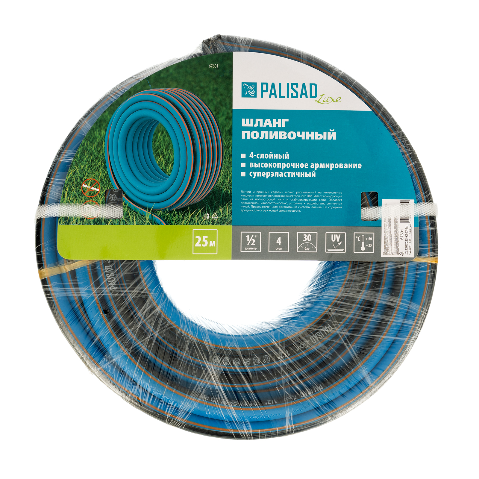 Армированный поливочный шланг Palisad LUXE 67601 длиной 25 м и диаметром 1/2" облегчает уход за растениями, избавляя от необходимости пользоваться лейкой. Совместим с любыми системами полива ТМ Palisad.