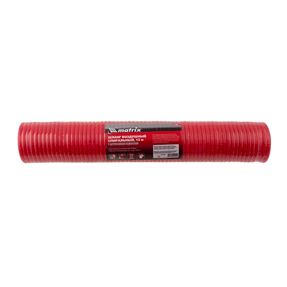 Спиральный воздушный шланг Matrix 57006 длиной 15 м, с быстросъемными соединениями, используется для подключения пневмоинструментов к компрессору. Изготовлен из легкого полиэтилена, за счет чего даже длительная работа не вызывает усталости. Имеет форму спирали, поэтому его не нужно скручивать после работы. Рукав пригодится в автосервисе, слесарной мастерской, а также во время отделочных работ.