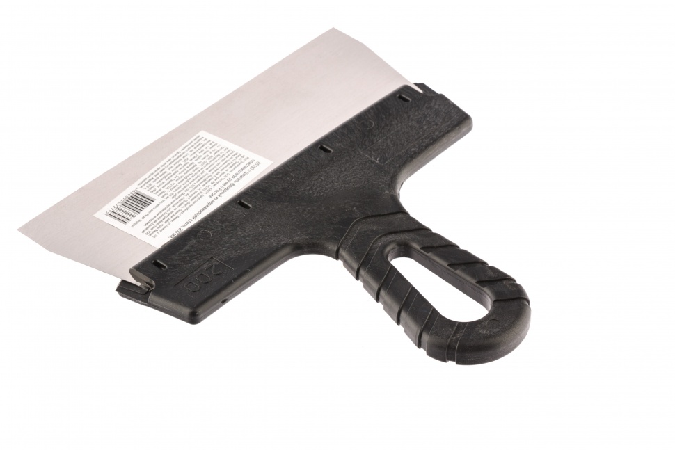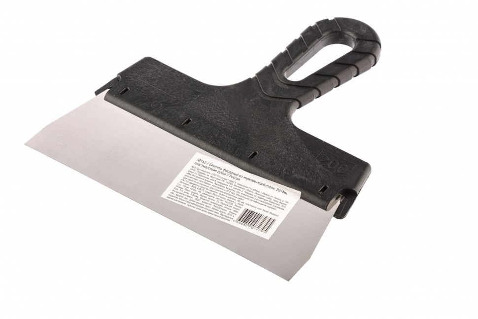 Фасадный шпатель Sparta 85150 с полотном из нержавеющей стали шириной 200 мм и пластмассовой ручкой предназначен для работы со строительными растворами. Используется для их смешивания, нанесения и равномерного распределения по малым или большим поверхностям.