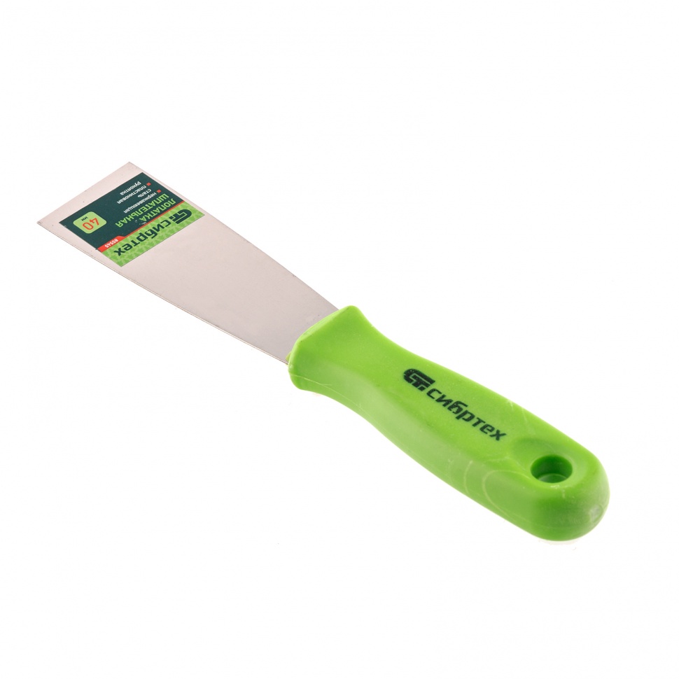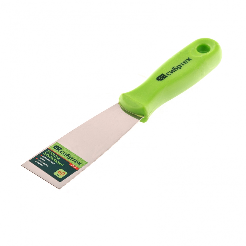Шпательная лопатка Сибртех 85545 с полотном шириной 40 мм из нержавеющей стали, с пластмассовой ручкой, используется для нанесения, выравнивания и разглаживания строительных растворов и смесей. Пригодится для проведения ремонтно-отделочных работ, подходит для начинающих и профессиональных мастеров.