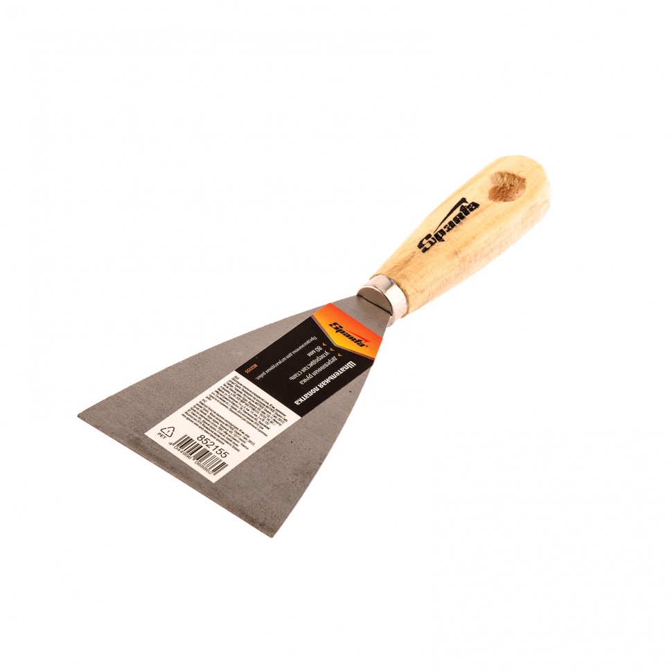 Шпательная лопатка Sparta 852155 с рабочей частью из углеродистой стали шириной 80 мм и с деревянной ручкой — незаменимый инструмент для нанесения, выравнивания и сглаживания строительных растворов. Применяется в быту при осуществлении ремонтных и отделочных работ.