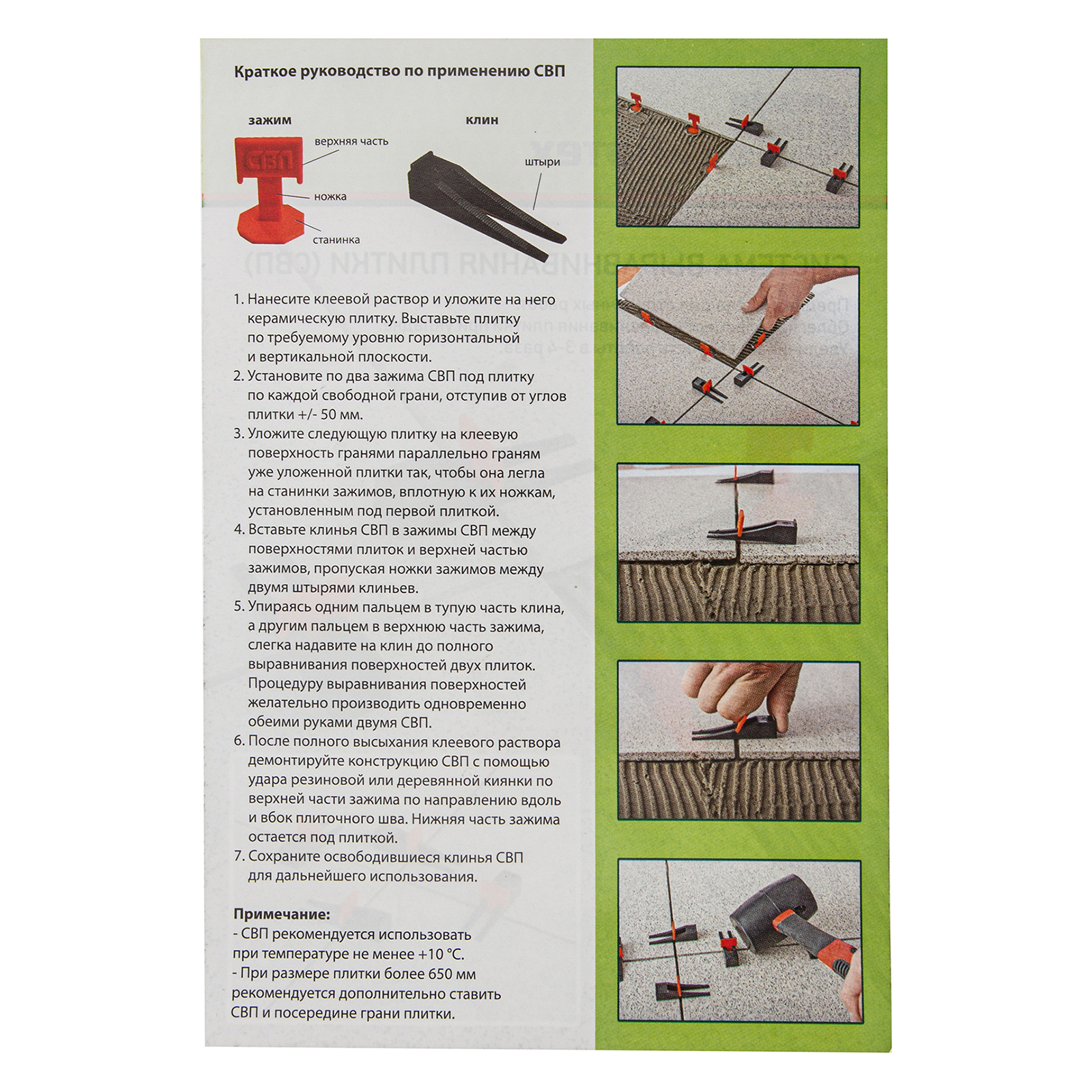 - Система выравнивания плитки обеспечивает равномерное распределение клея, что сводит к минимуму риск образования пустот.