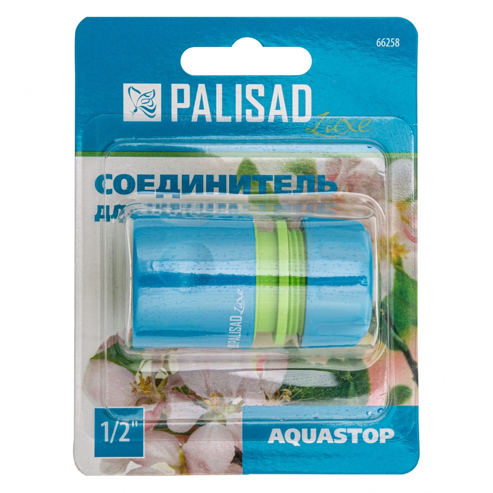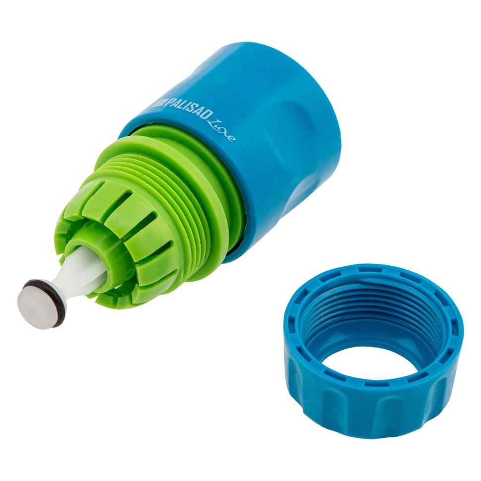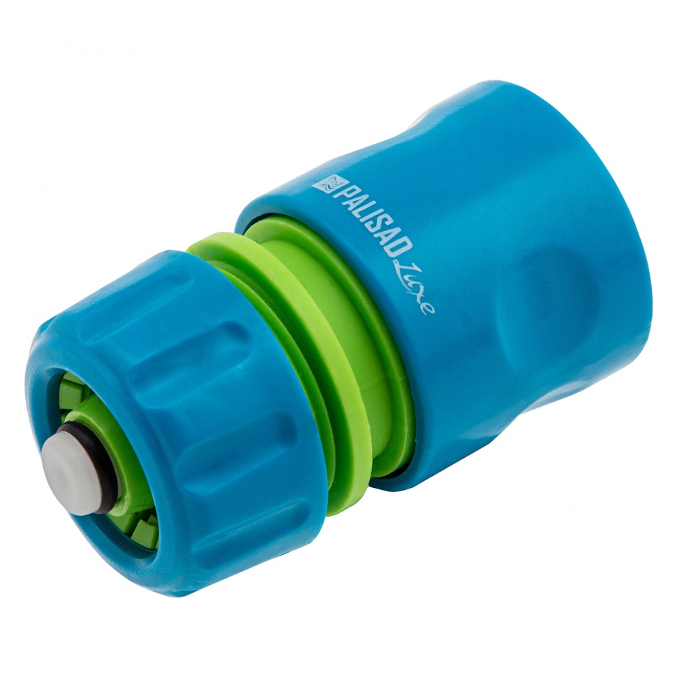 Пластмассовый однокомпонентный быстросъемный соединитель Palisad Luxe 66258 с клапаном «аквастоп» используется для подключения шланга диаметром 1/2" к распылителю. Будет полезен при монтаже поливочной линии на дачном участке.