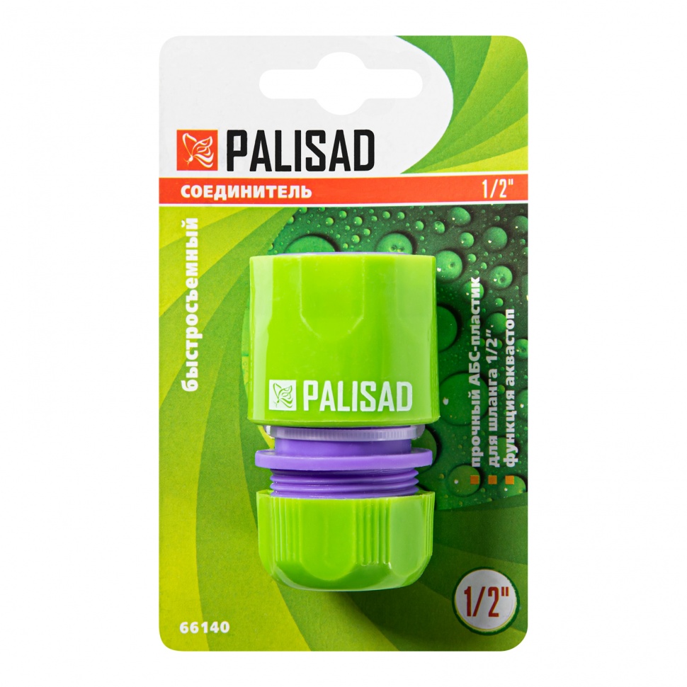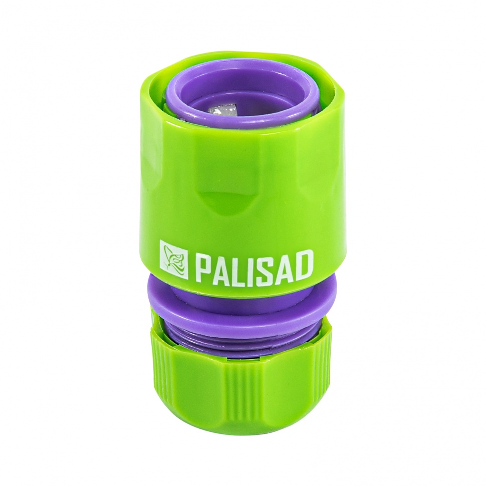 Пластмассовый быстросъемный соединитель Palisad 66140 с клапаном «аквастоп» совместим со шлангами диаметром 1/2" и позволяет подключать их к распыляющим насадкам. Будет полезен при монтаже системы орошения на дачном участке.