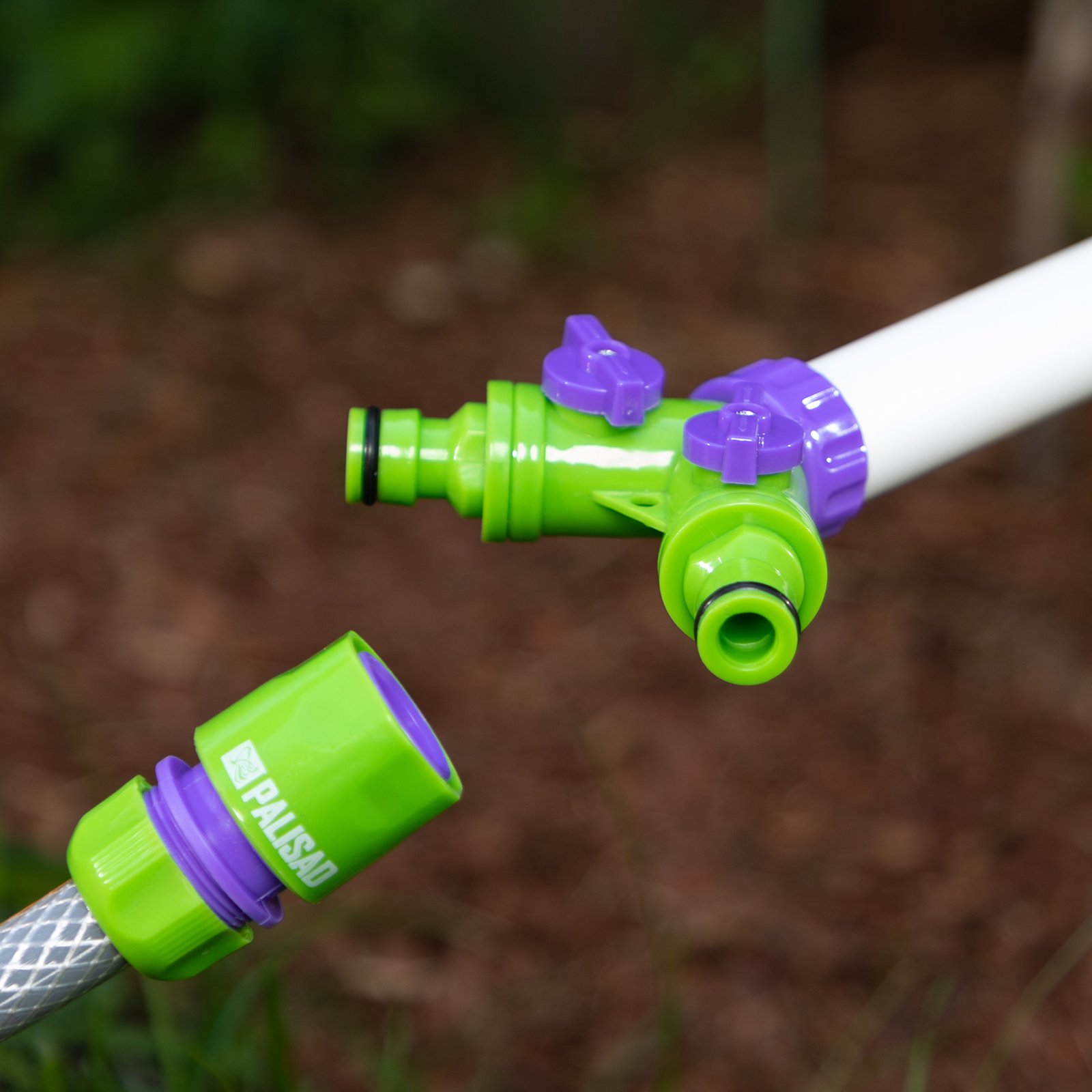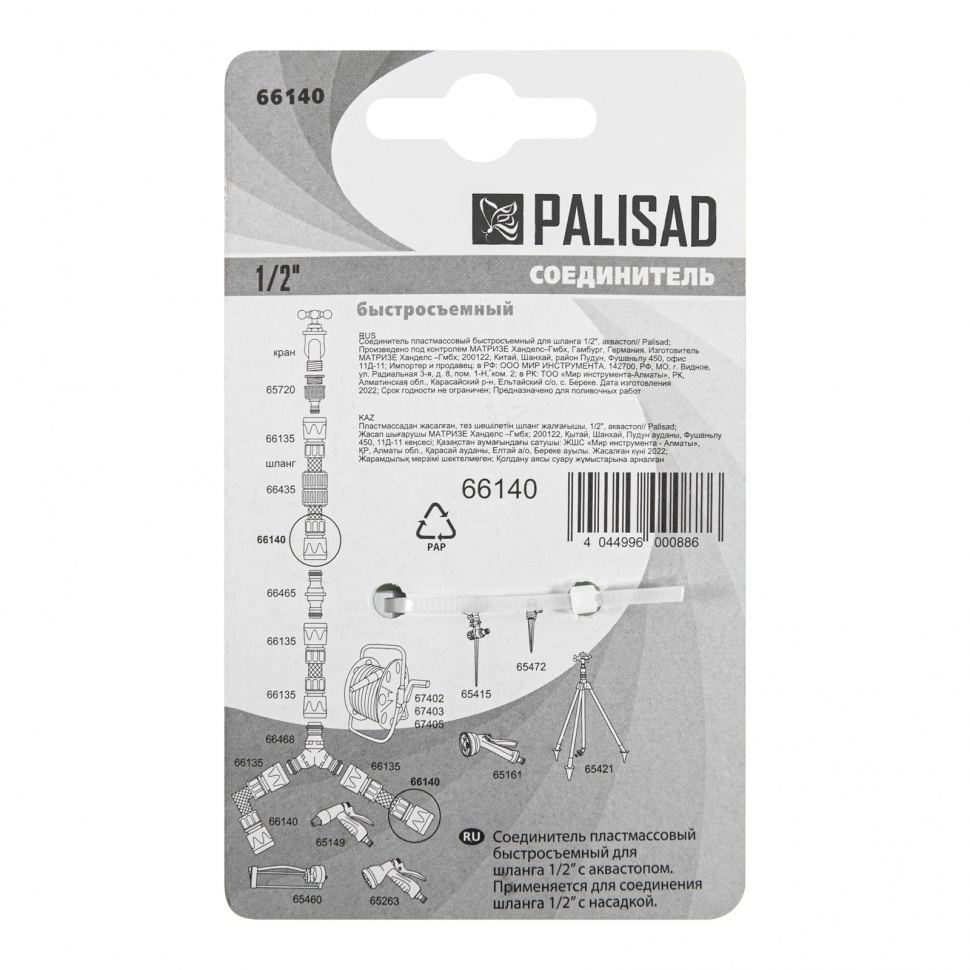 - Универсальность — соединитель подходит к тройникам, адаптерам, переходникам и элементам наборов поливочных систем Palisad и Palisad Luxe.